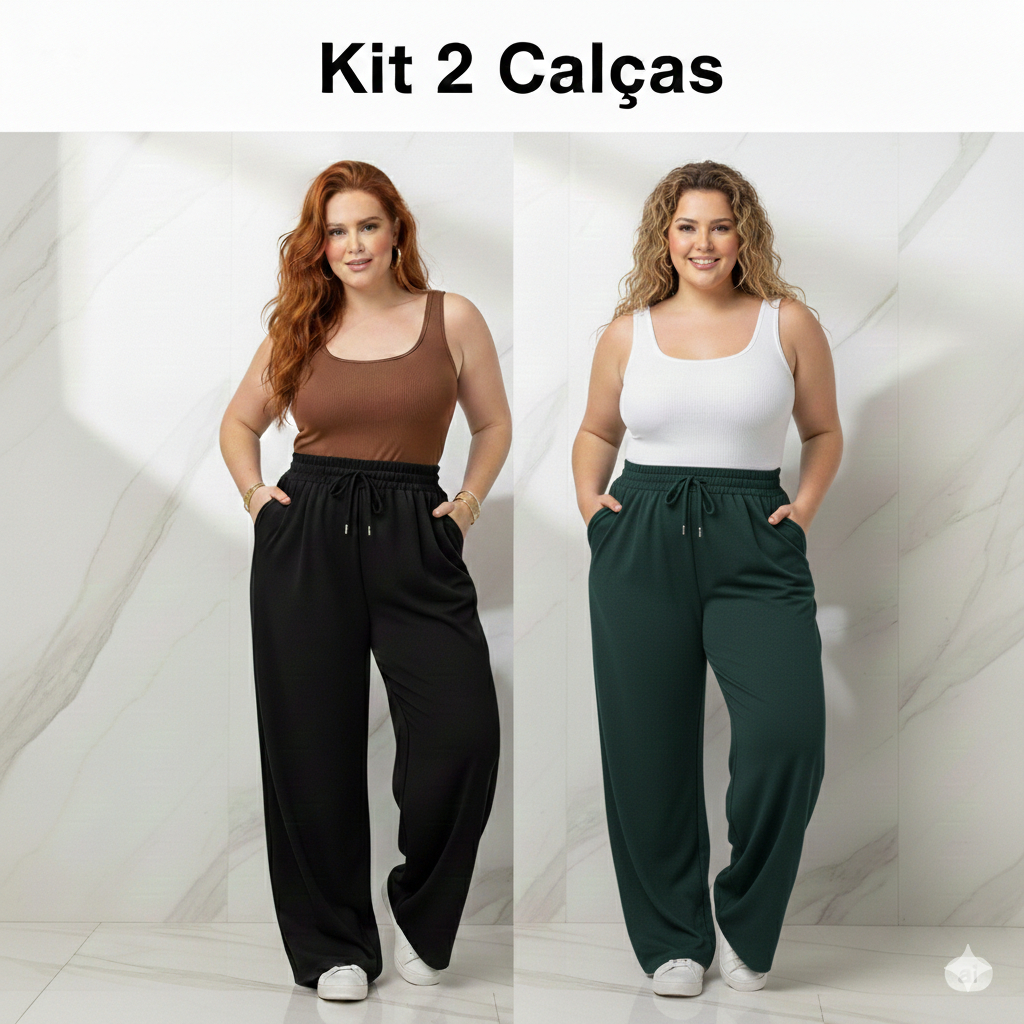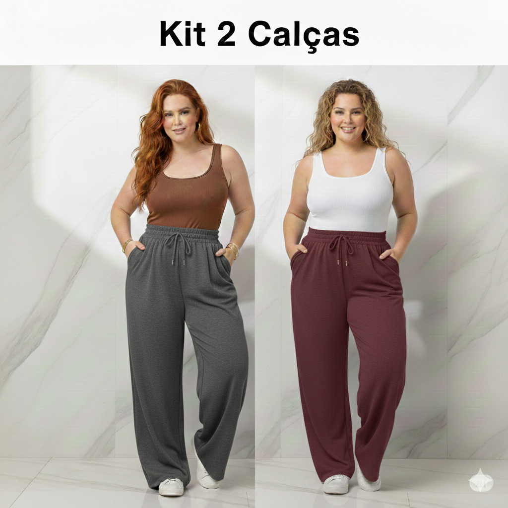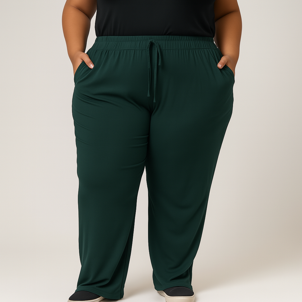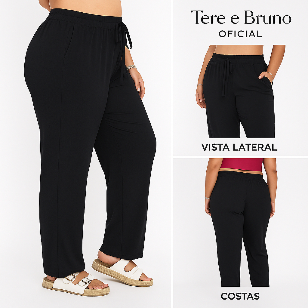 Calça Feminina Plus Size de Malha Reta Gestante Pijama Feminino Lycra Larga Pilates Grávida G4 G3 G2