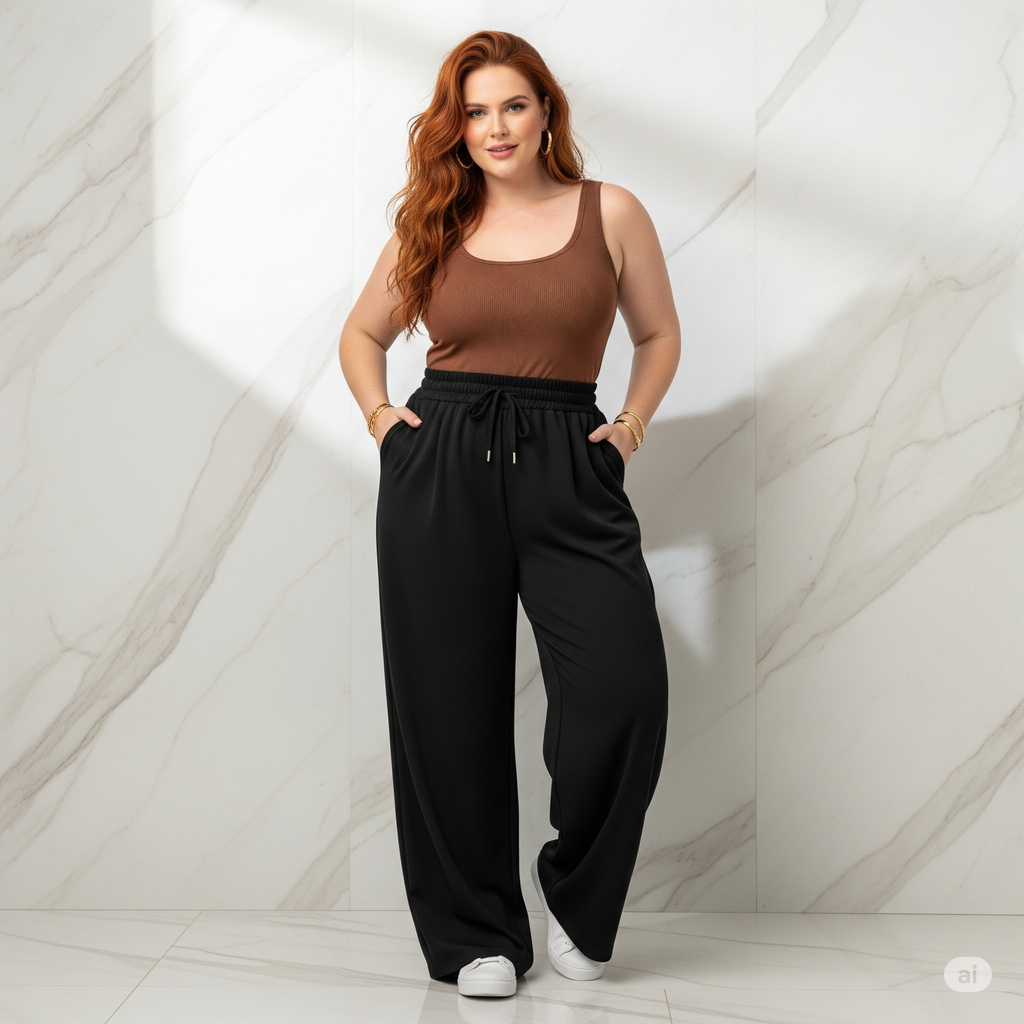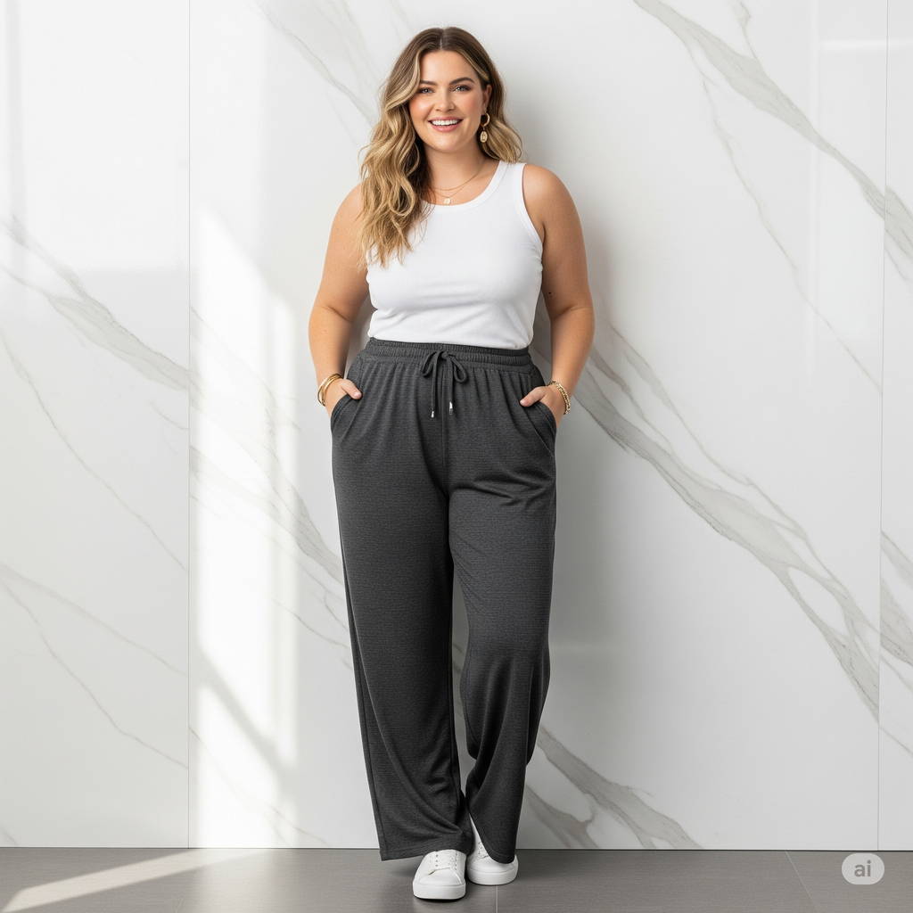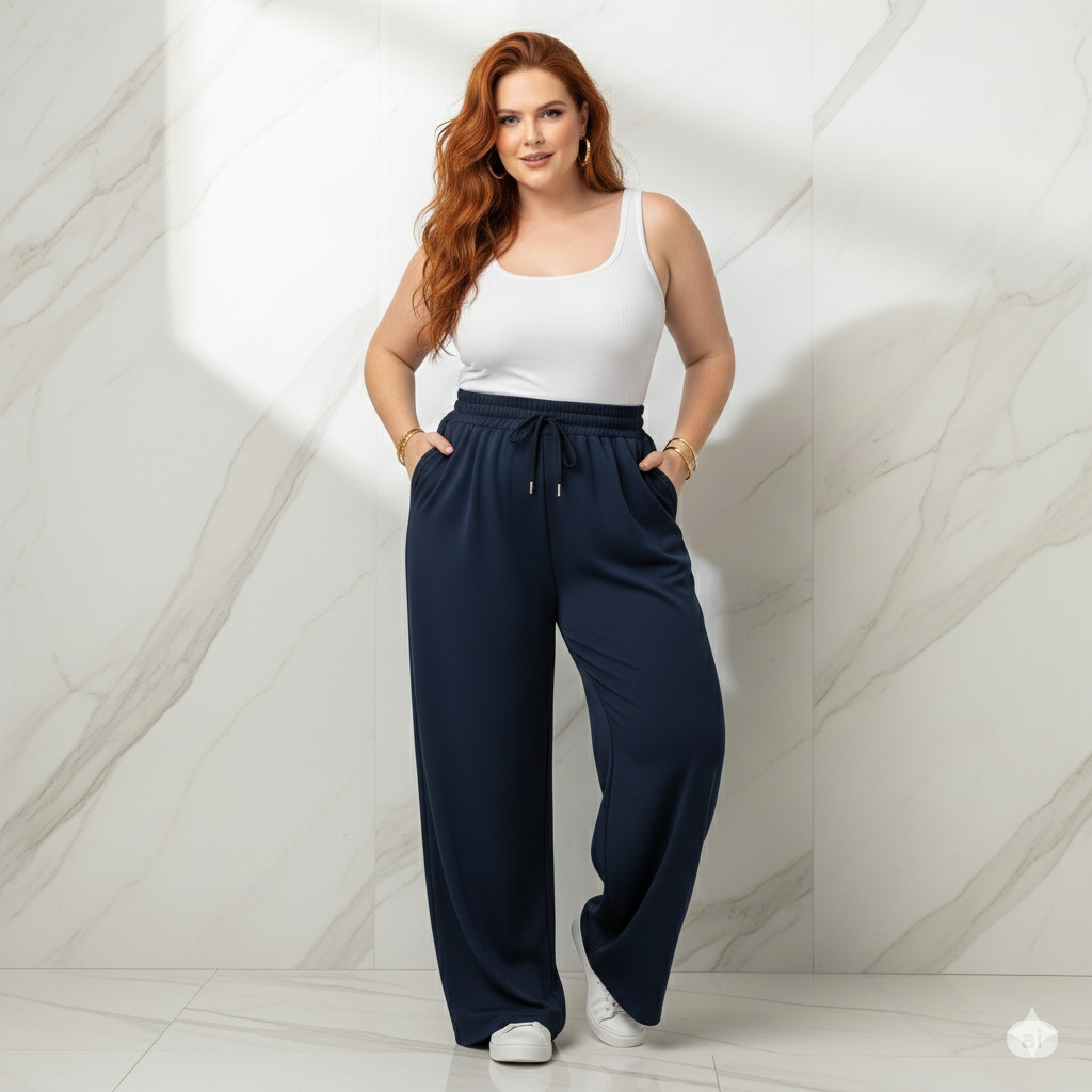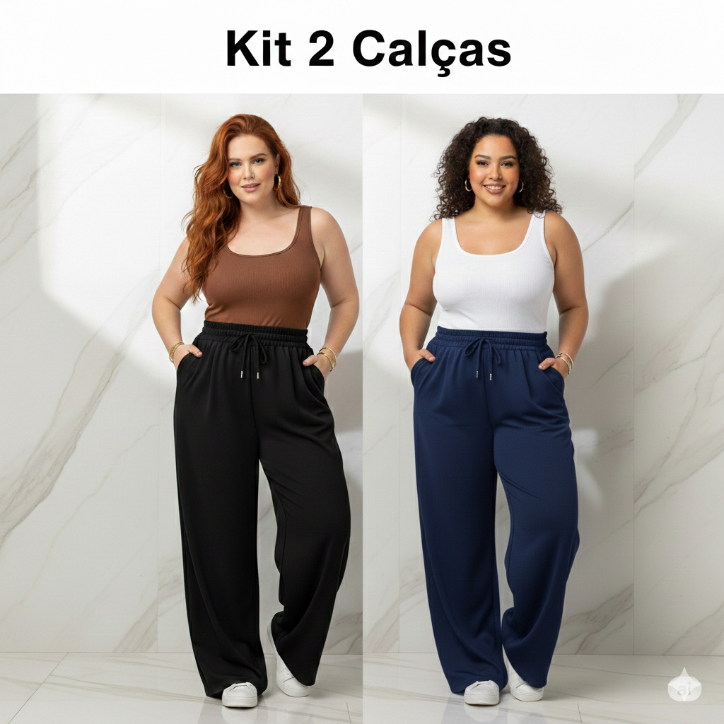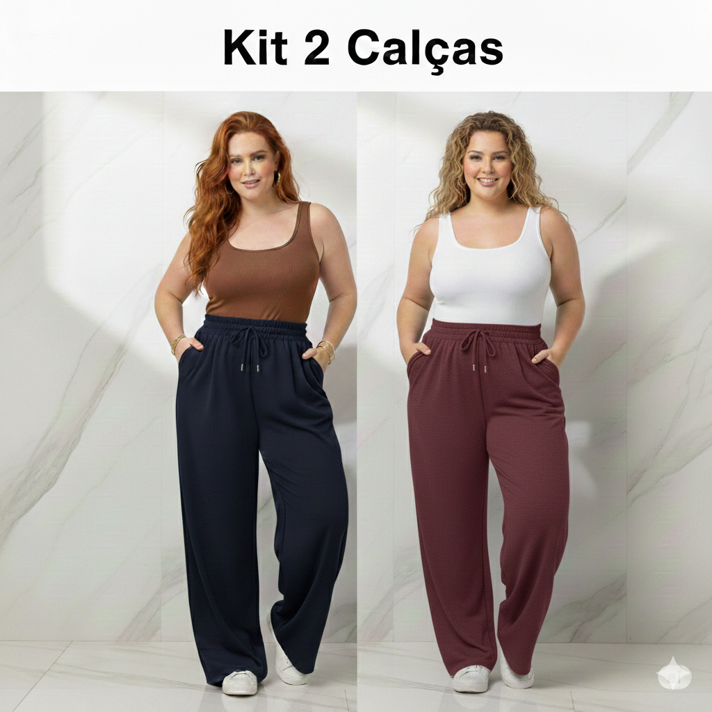 Calça Feminina Plus Size de Malha Reta Gestante Pijama Feminino Lycra Larga Pilates Grávida G4 G3 G2