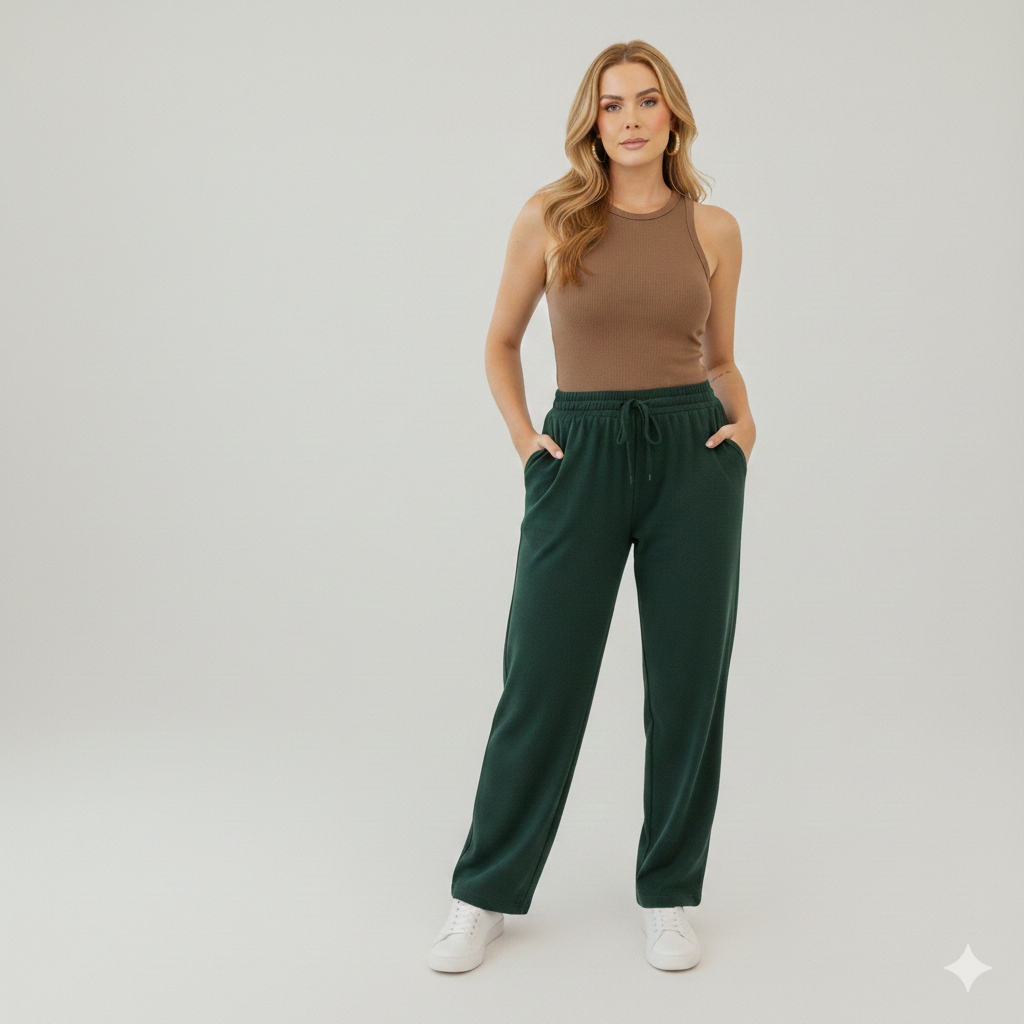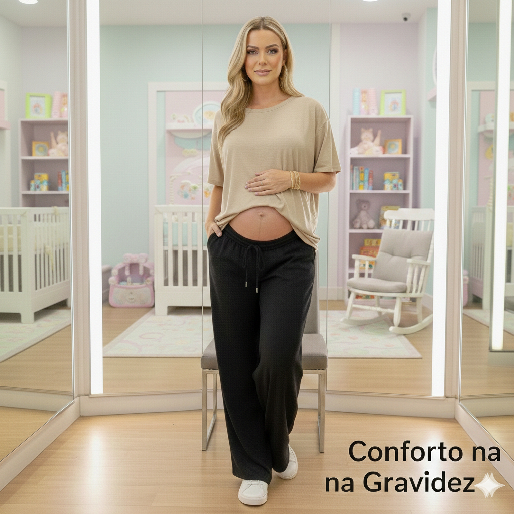 Calça Gestante Cós Alto Grávida Confortável Maternidade Feminina Soltinha Cintura Alta Pijama Bolso Plus Size