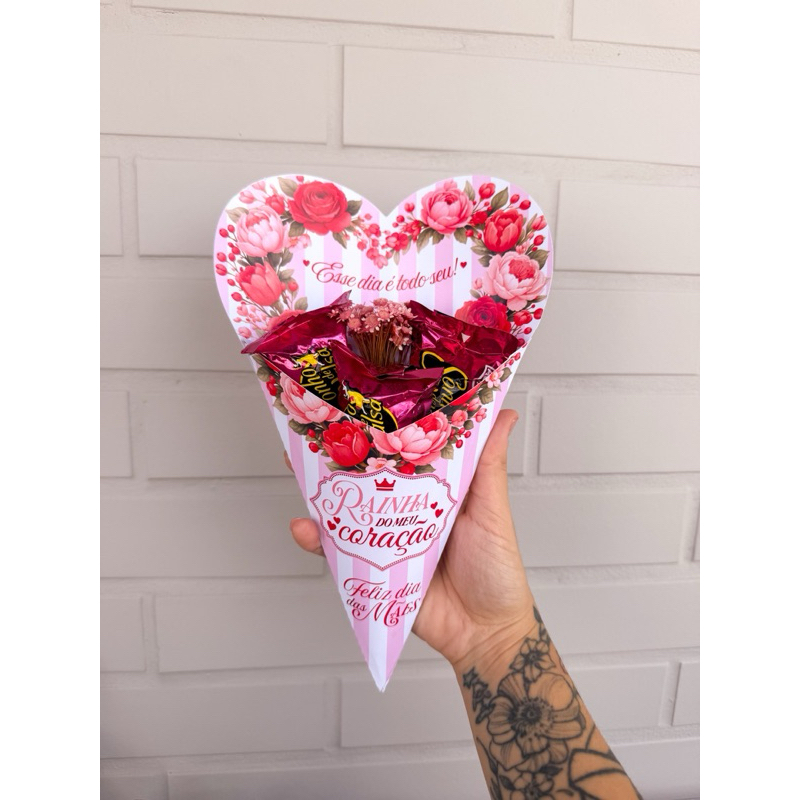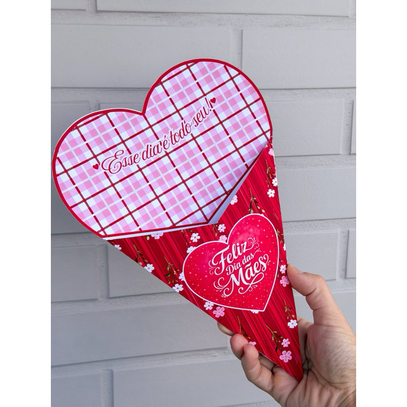 Caixa Buquê Cone Coração Páscoa|Dia das Mães - Embalagem para Bombons - Presente Páscoa, Lembrança Páscoa