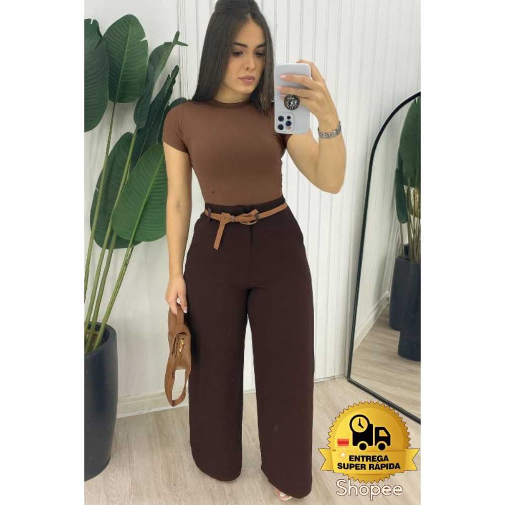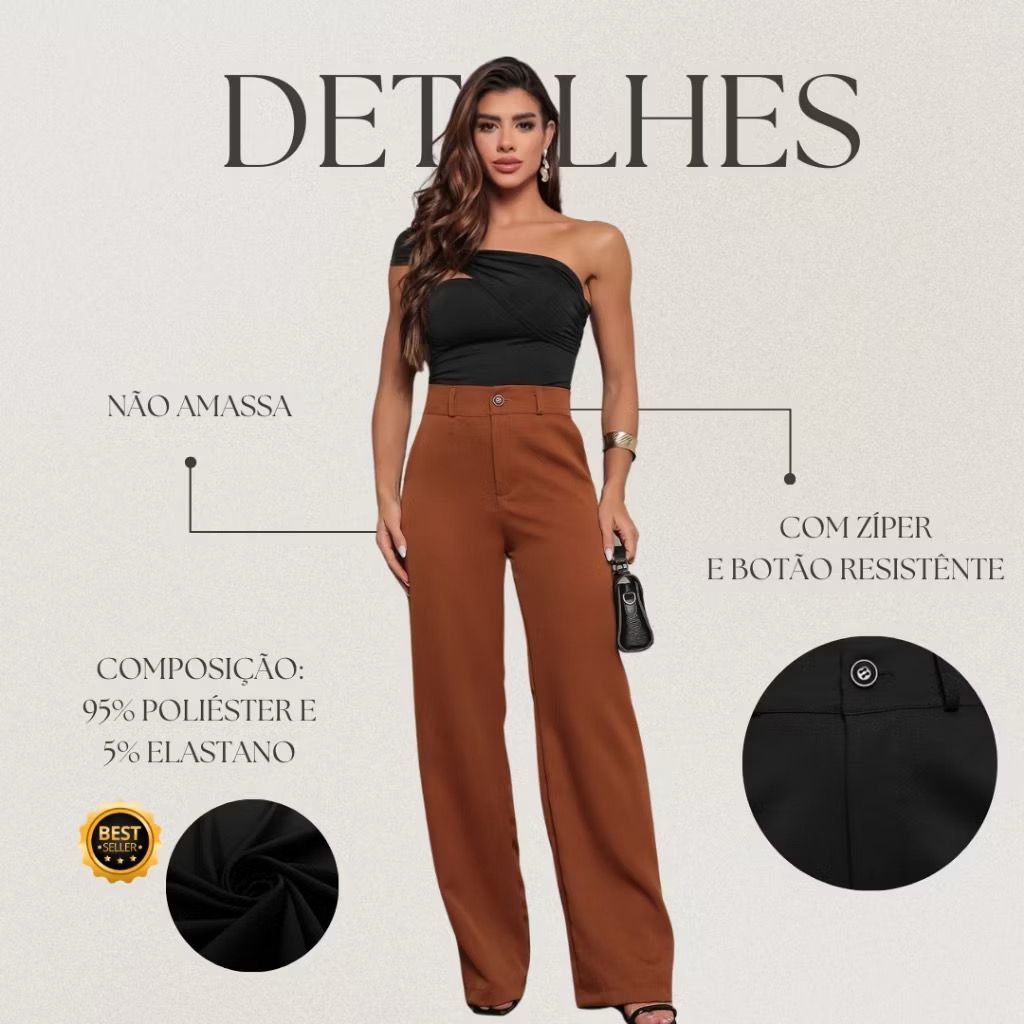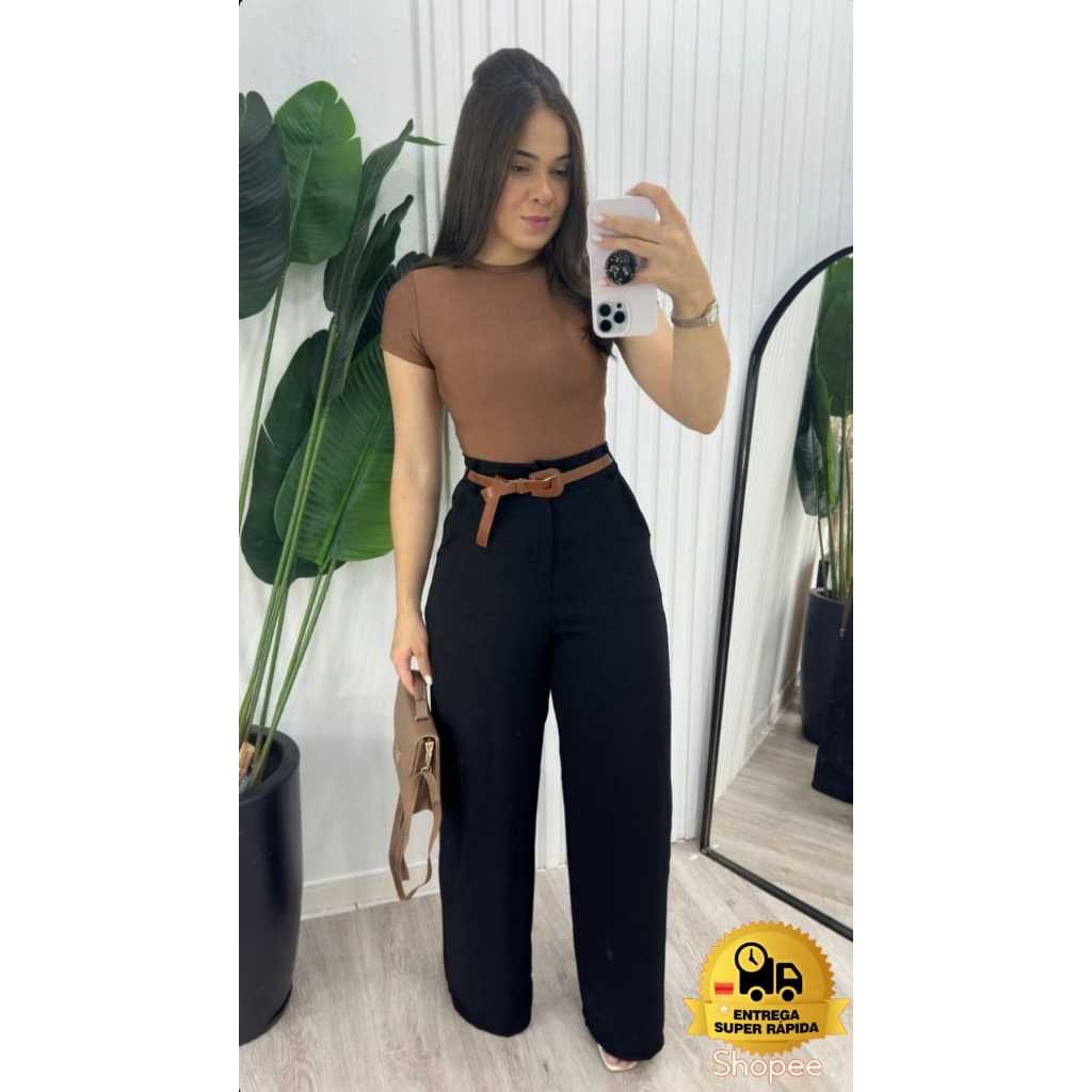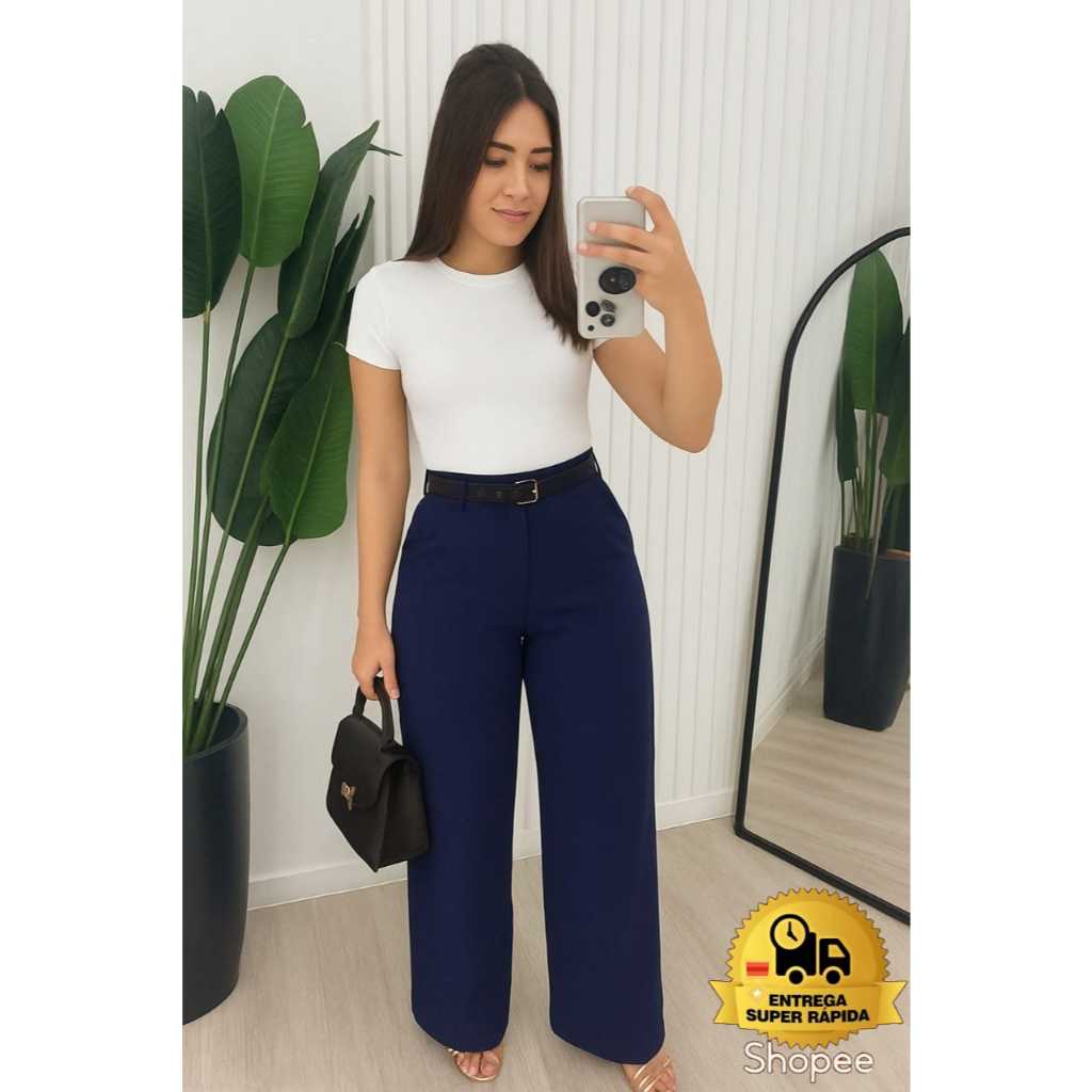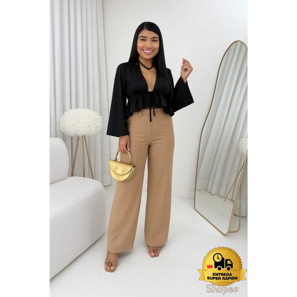 Calça alfaiataria feminina pantalona wide leg Cintura Alta PREMIUM