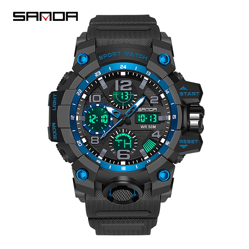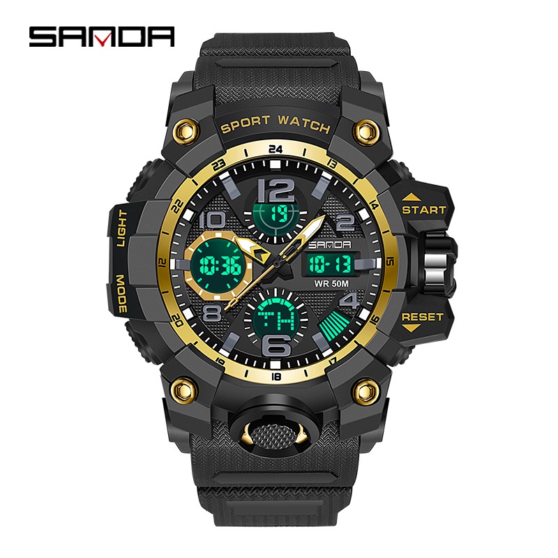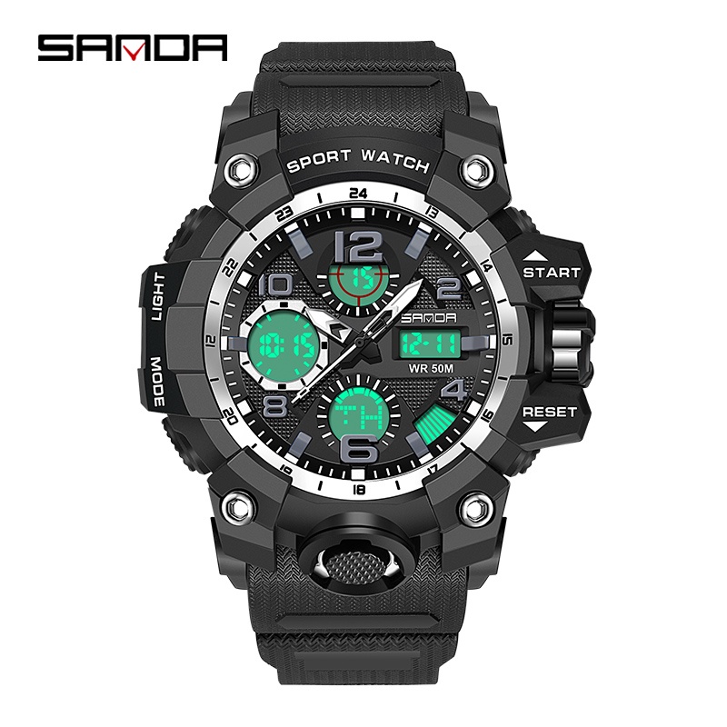 【Sanda Official】Relógio Masculino Esportivo à Prova D'água Relógio Digital De Quartzo Superbrilhante De Luxo Com LED Externo Analógico Militar Relógio Despertador Multifuncional