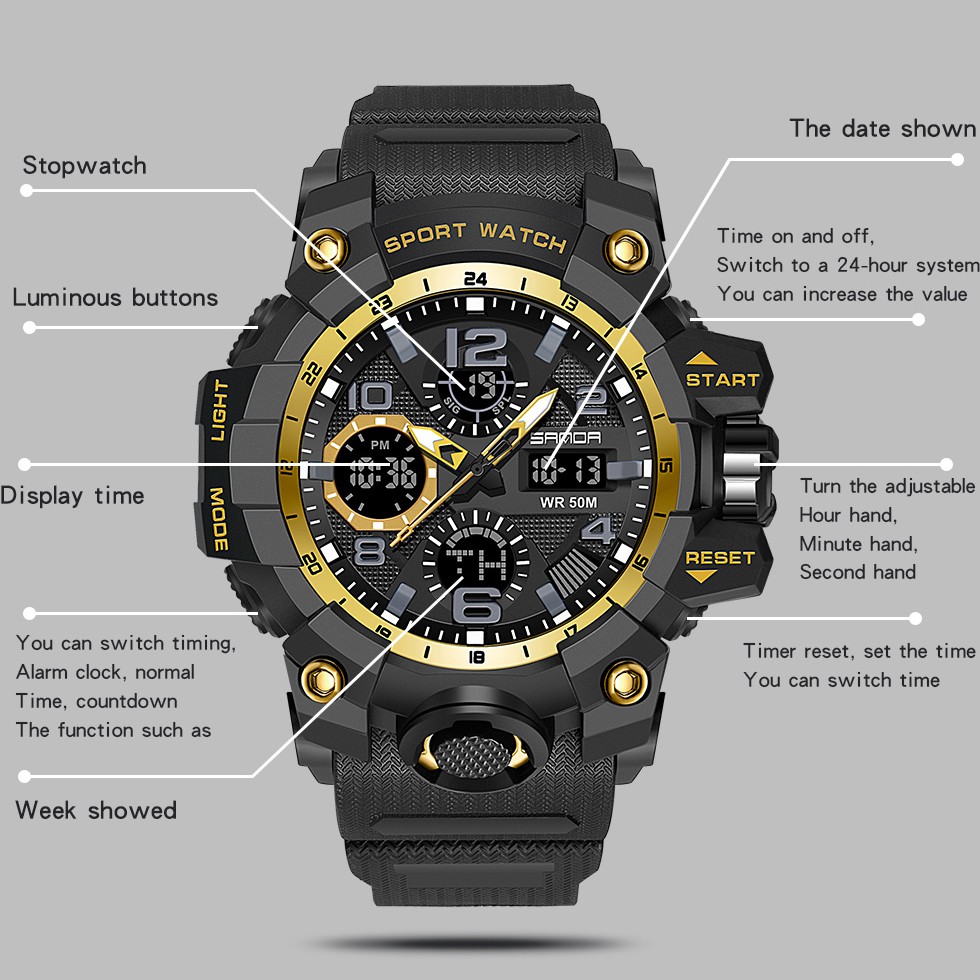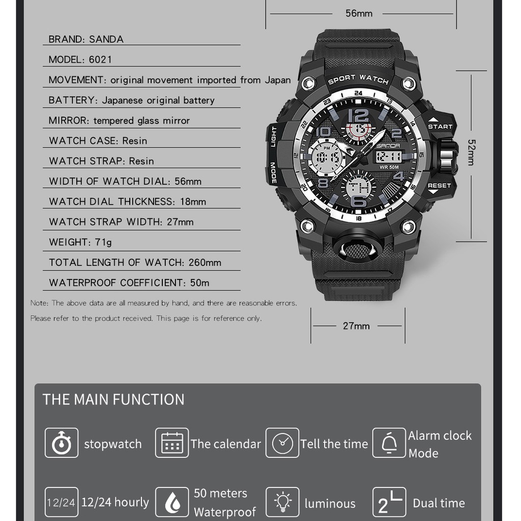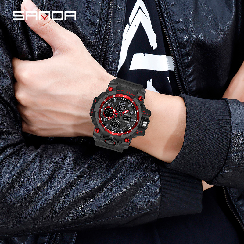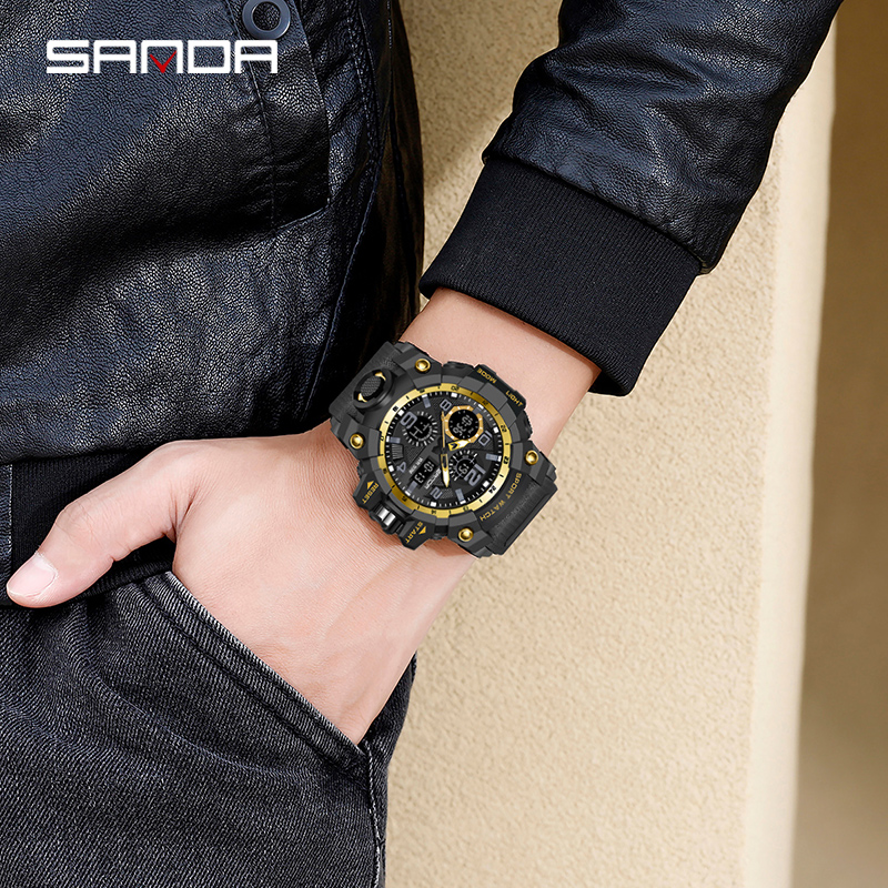 【Sanda Official】Nova Listagem Relógio Masculino Original Esportivo à Prova D'água Super Bright Fashion Luxury LED Analógico Externo Militar Relógio Masculino Multifuncional