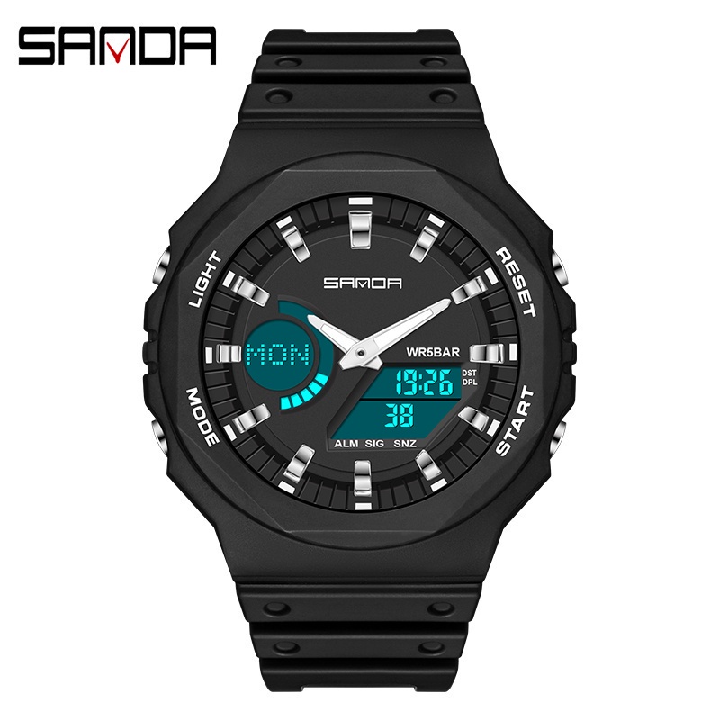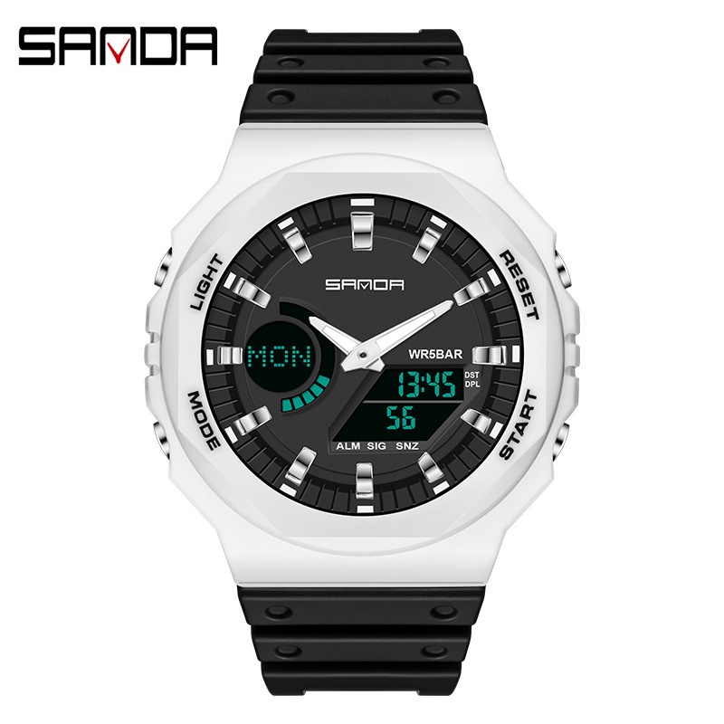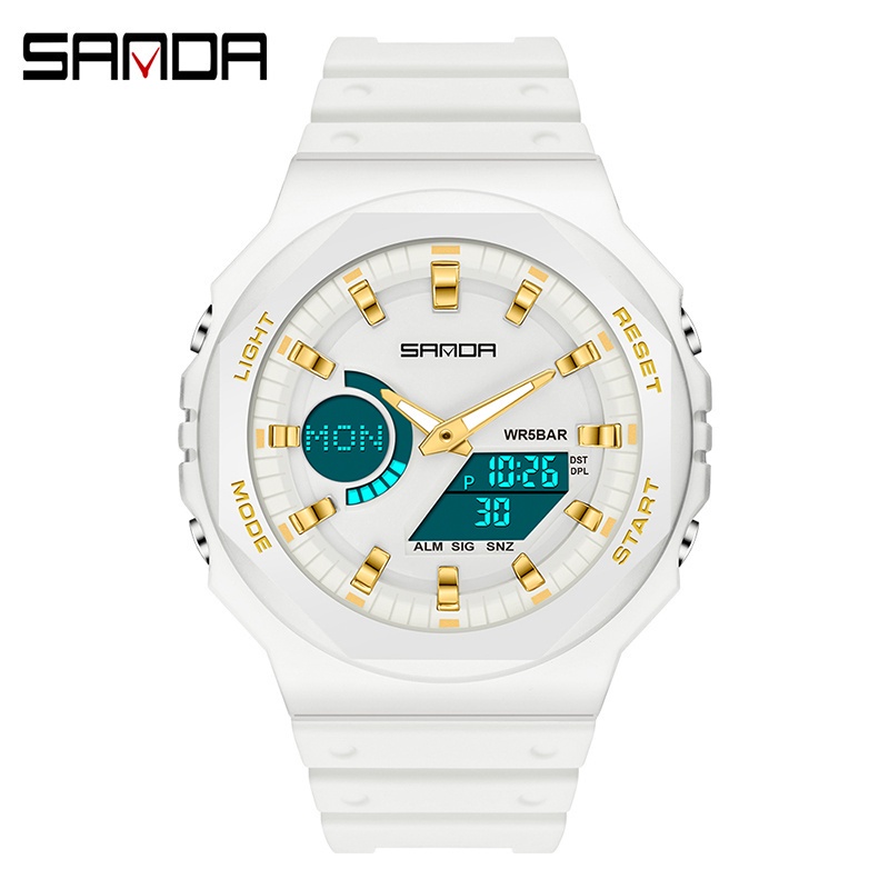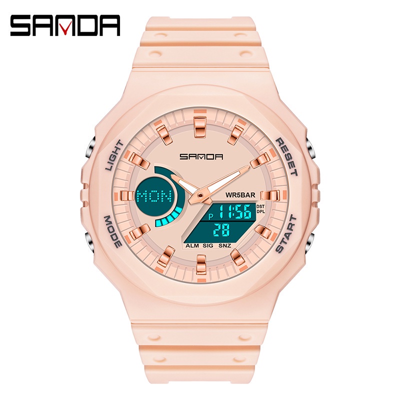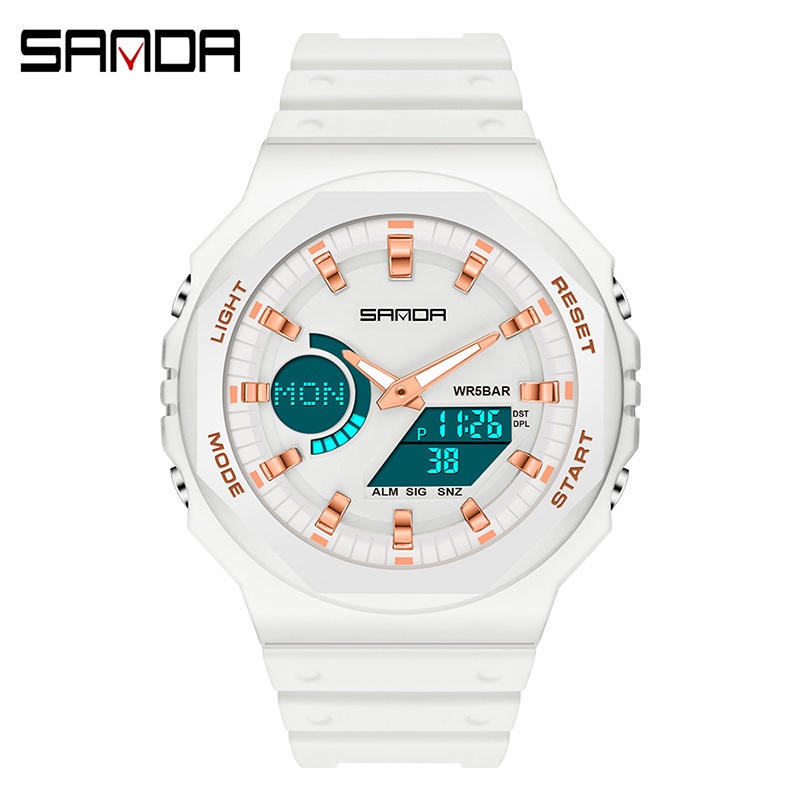 Sanda Relógio De Pulso Feminino Com Display Duplo/Esportivo/Multifuncional/Moderno/De Luxo 6016-5