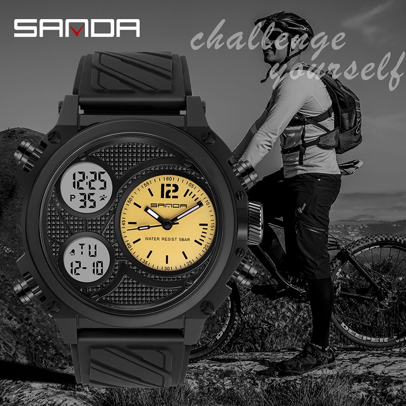 SANDA Relógio De Pulso Masculino Multifuncional Esportivo À Prova D'água Com Display Duplo 1/3002