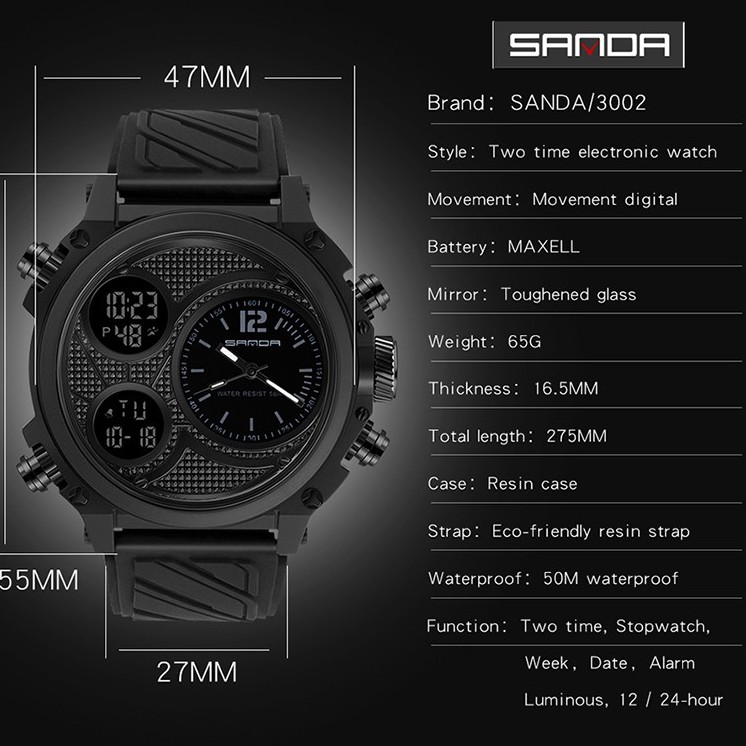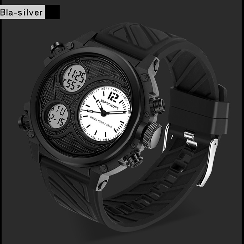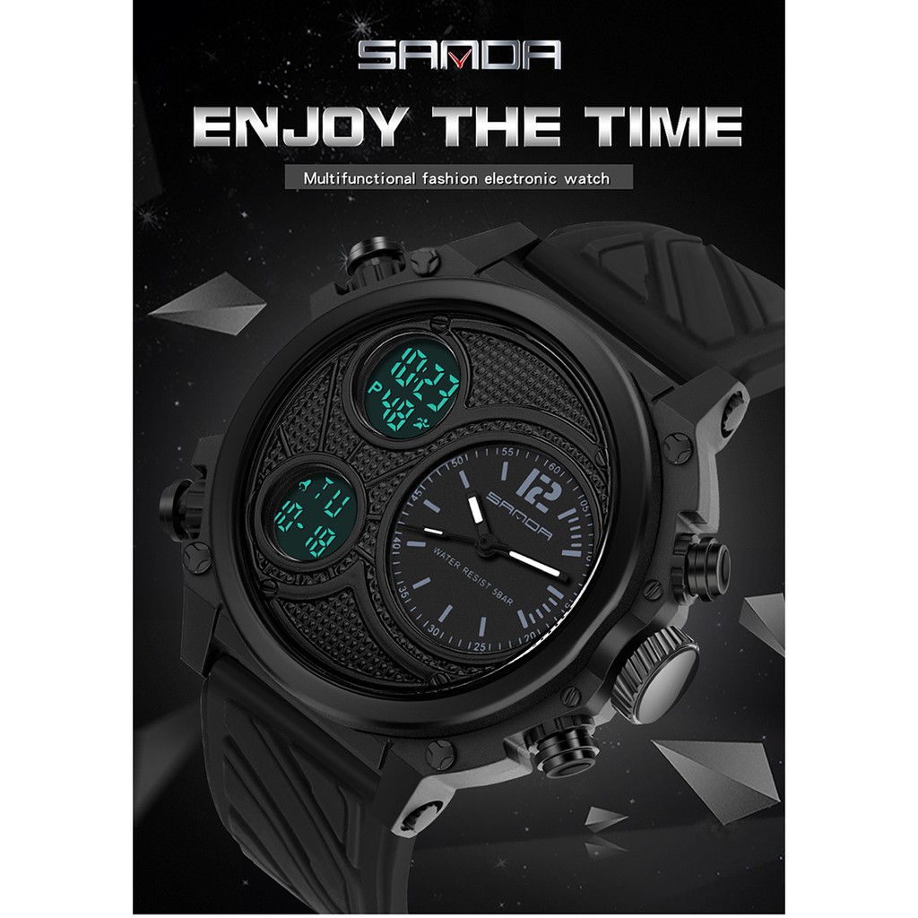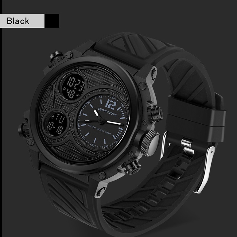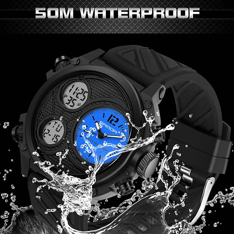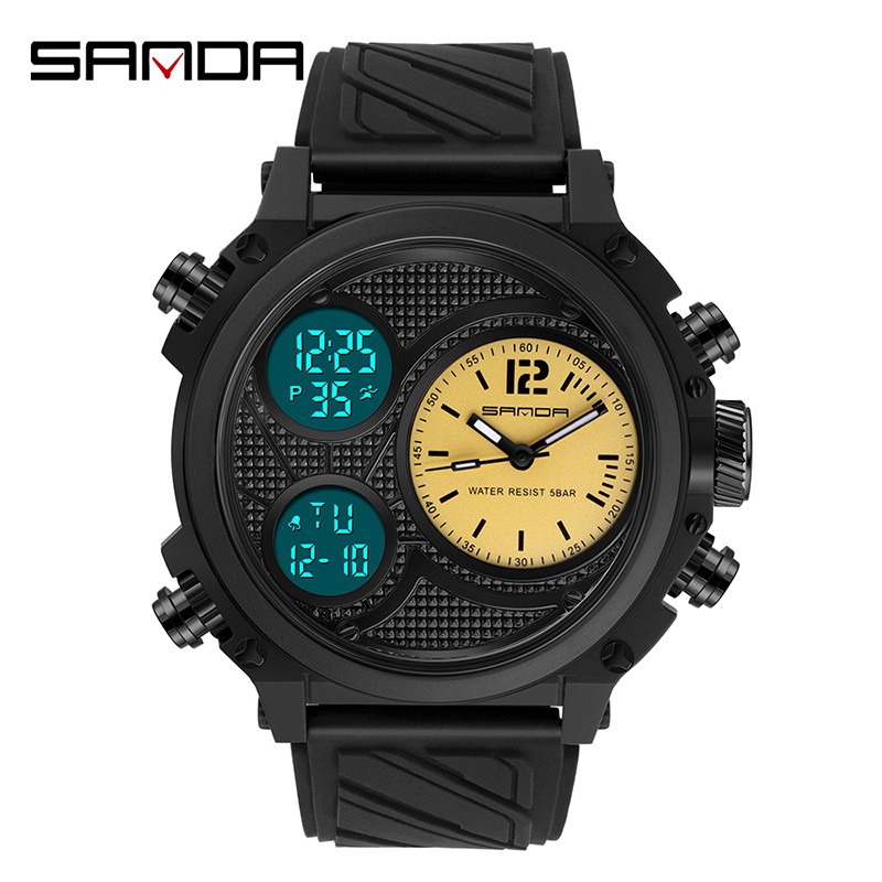 SANDA Relógio De Pulso Masculino Multifuncional Esportivo À Prova D'água Com Display Duplo