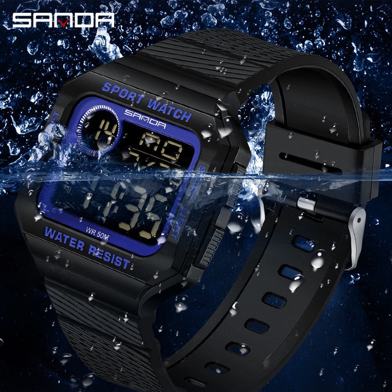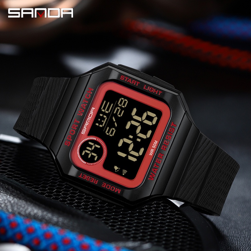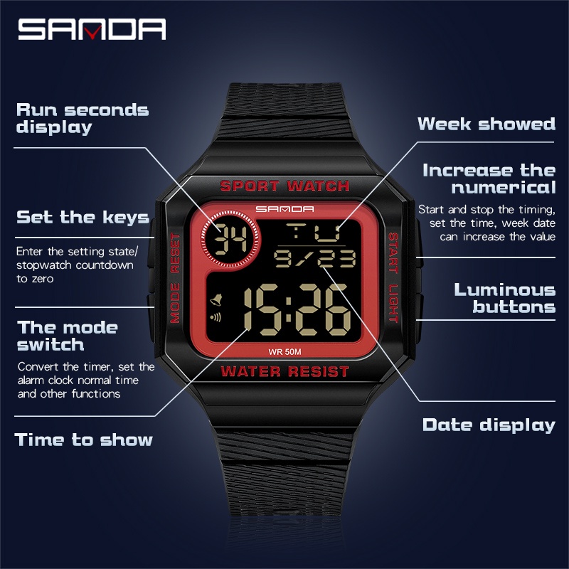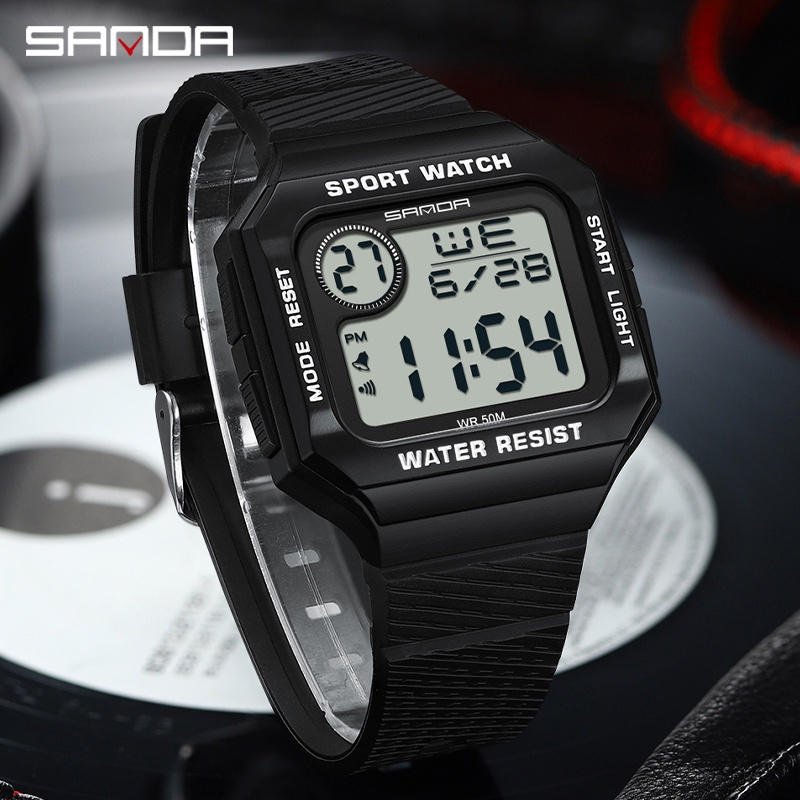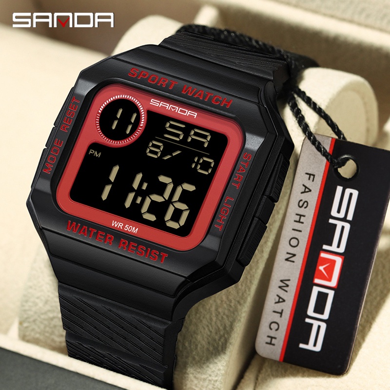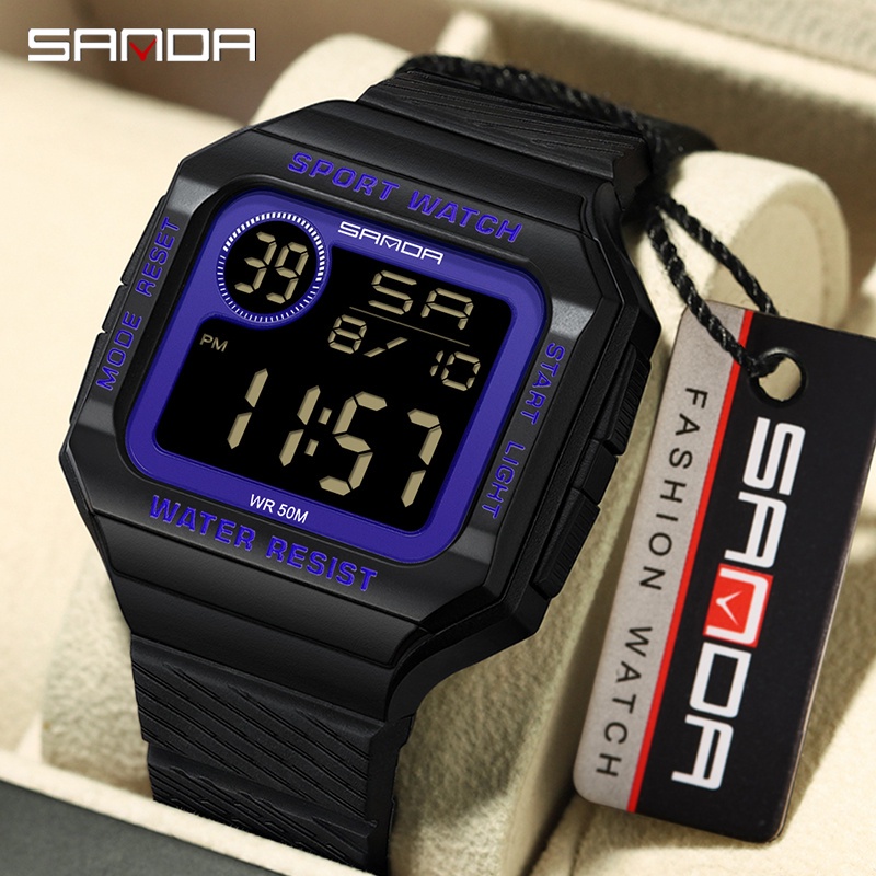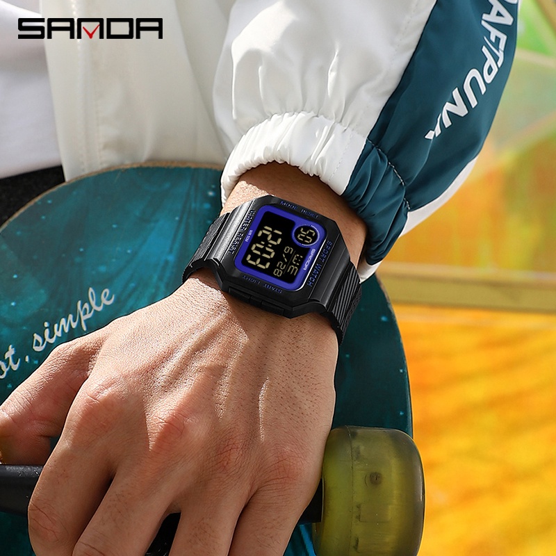 SANDA Quadrado Cronômetro De Tela Grande Moda Luxuoso Casual Impermeável Relógio Homem Presente 2129-12