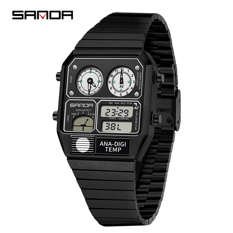 Sanda Retro Trendy Punk Relógio Eletrônico De Quartzo À Prova D'água SD3192-10