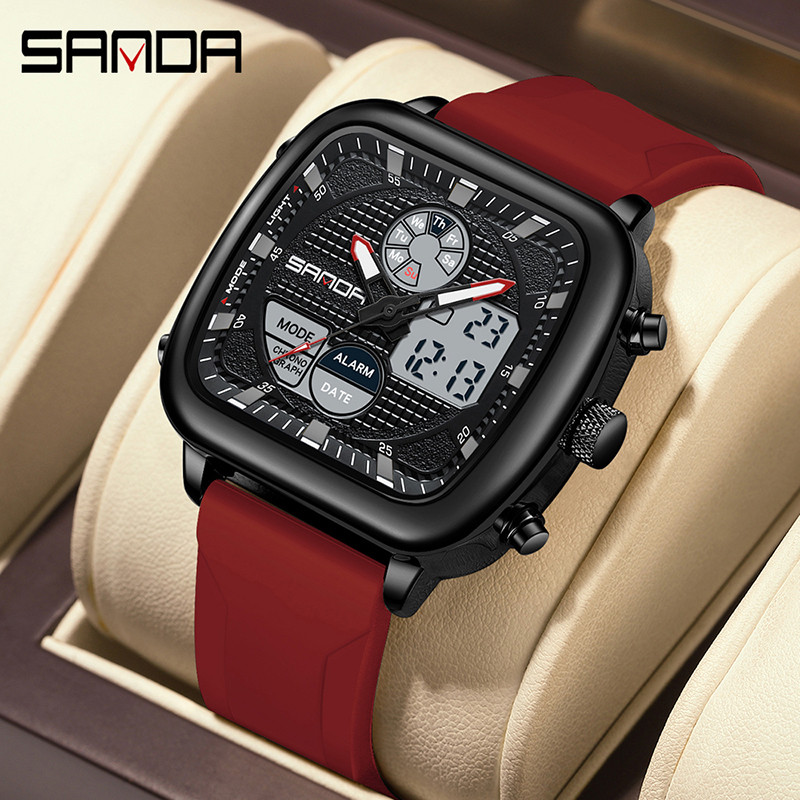 SANDA Creative Retro Multi Funcional display Dial Relógio Masculino Eletrônico De Quartzo Moderno SD9101-3