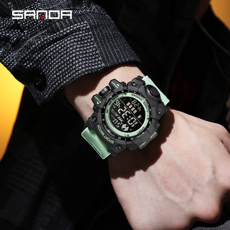 SANDA Novo Relógio Eletrônico De Tela Cheia Tendência Multifuncional À Prova D'água Luz Noturna Masculino SD6229-3