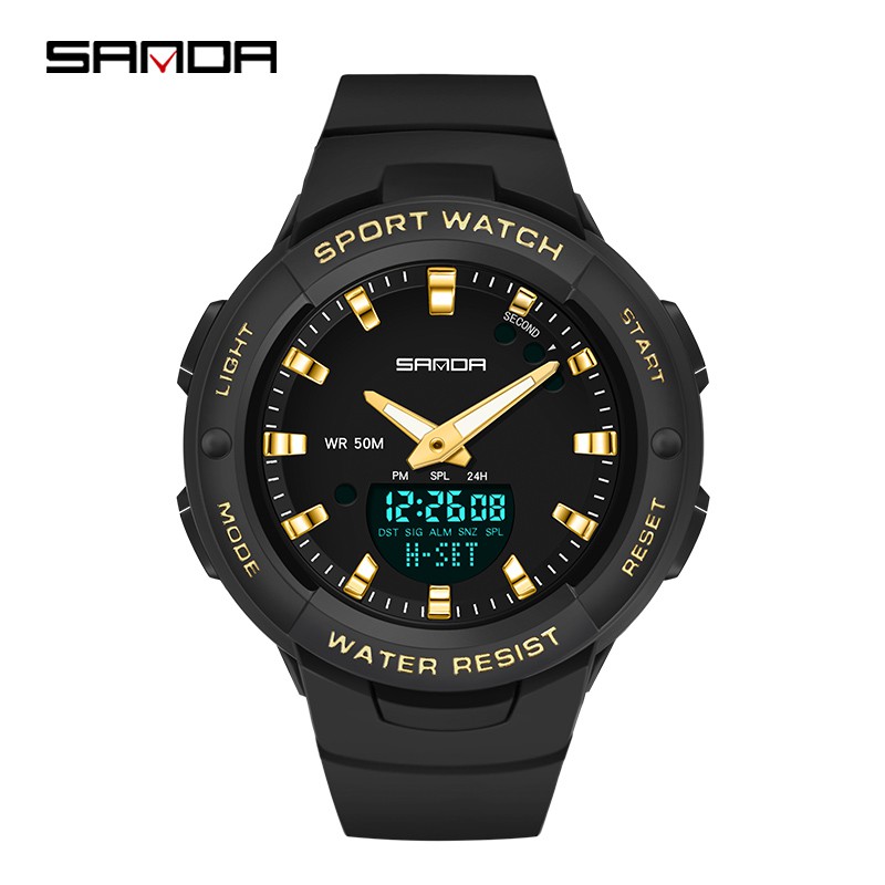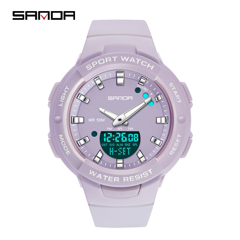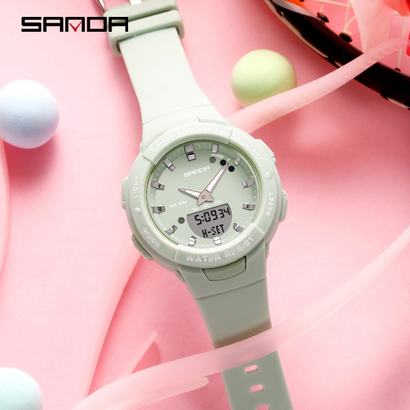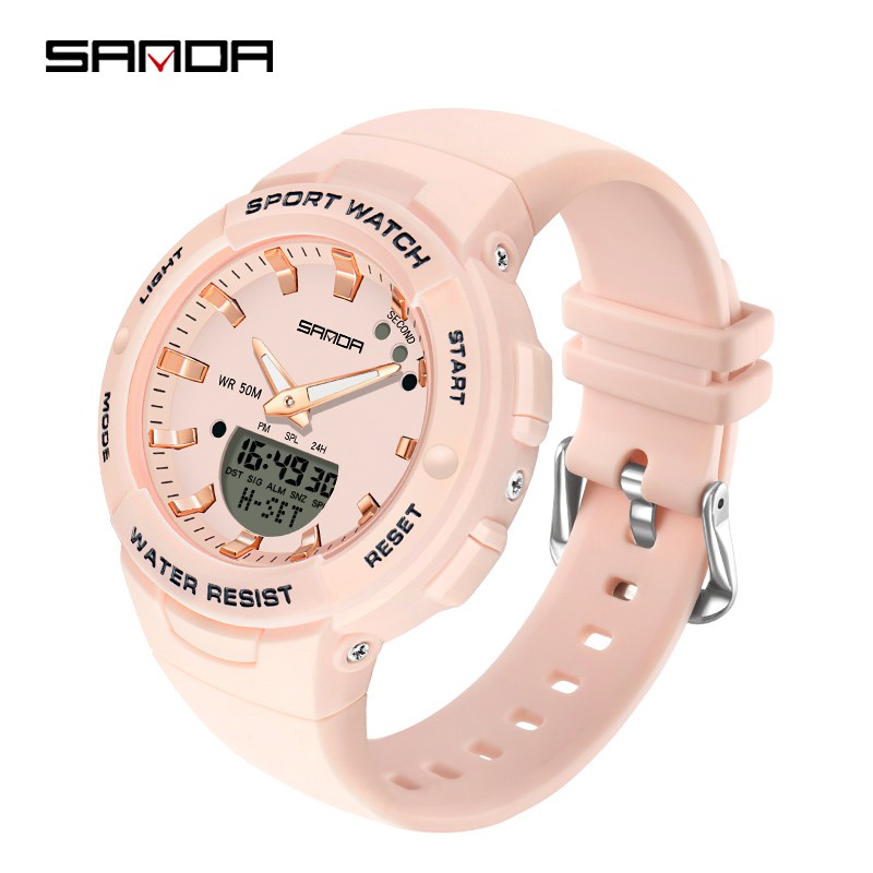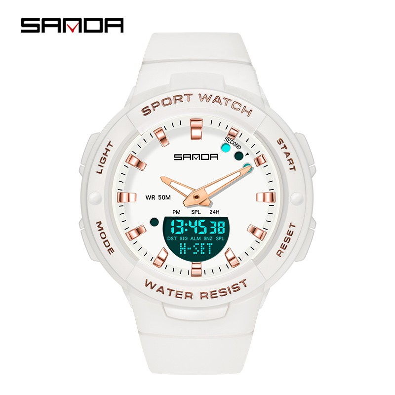 Sanda Relógio feminino à prova d'água para mulheres luxuosas e multifuncionais com cronógrafo luminoso ao ar livre