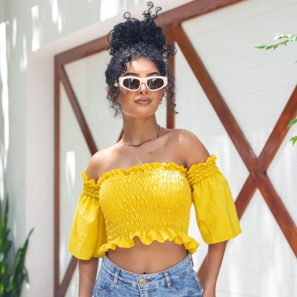 Cropped Lastex Feminino Ciganinha Manga Longa Blusa Feminina Croped Diversas Cores Tomara Que Caia