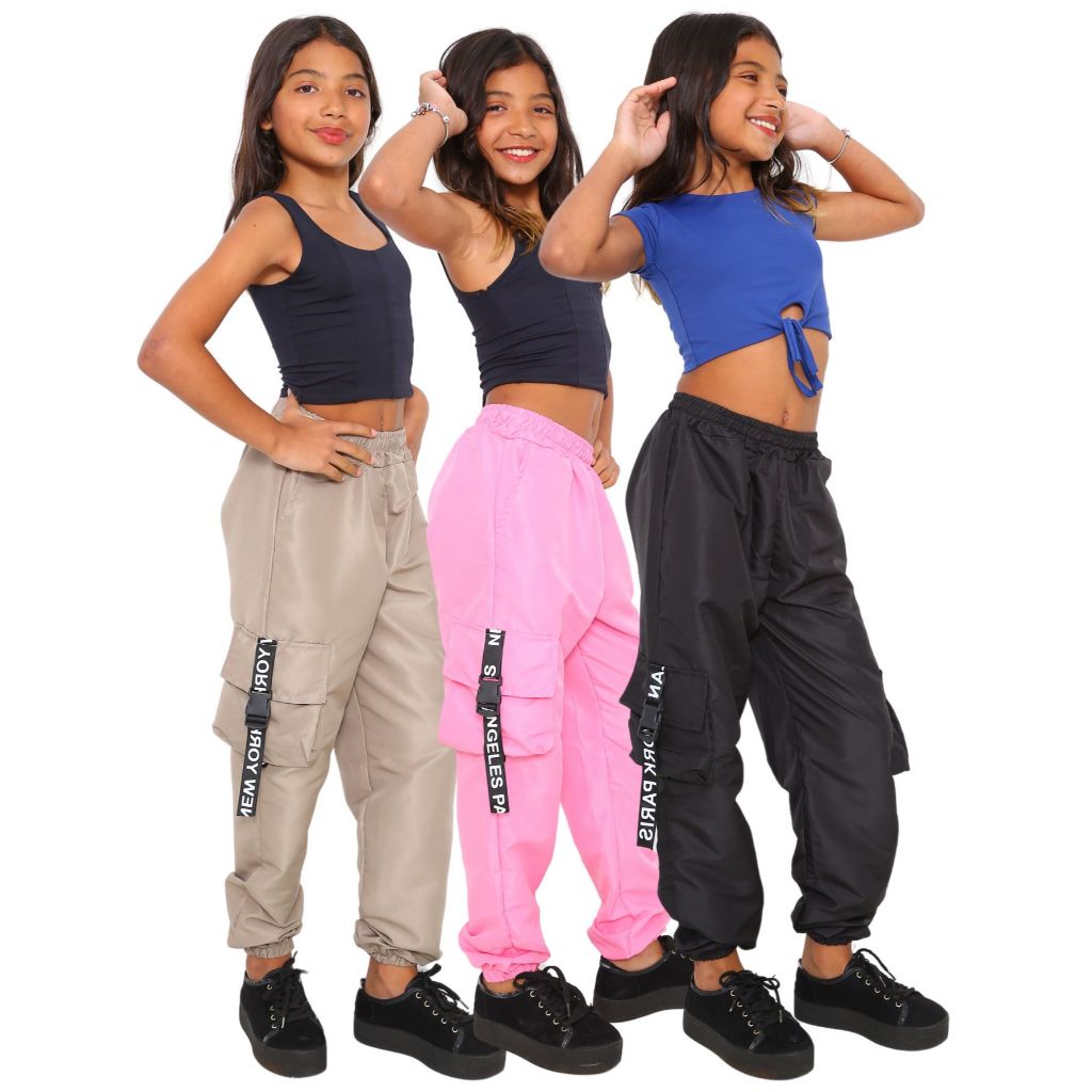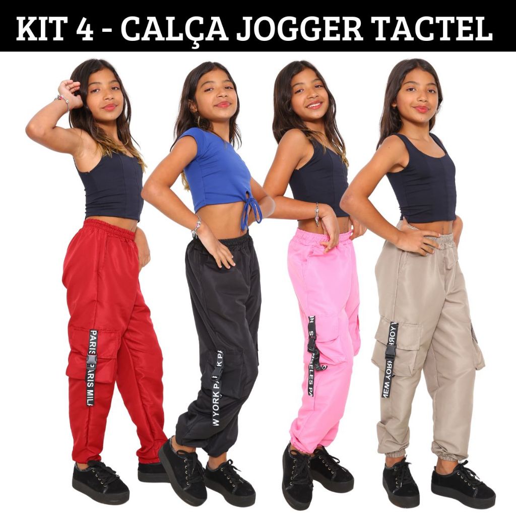 OFERTA KIT 4 Calça Jogger Infantil Feminina Para Meninas Estilosas Calça Cargo 4 Bolso Tecido Tactel Moda Crianças