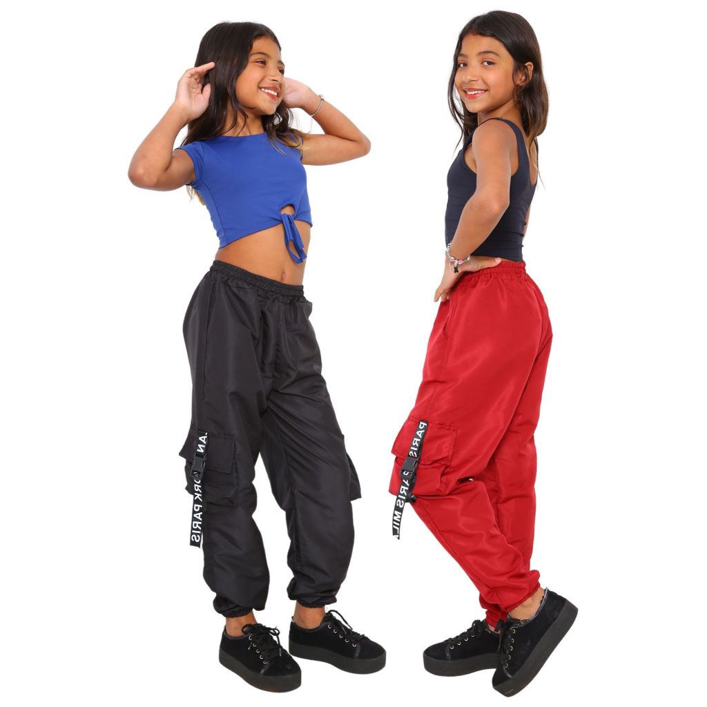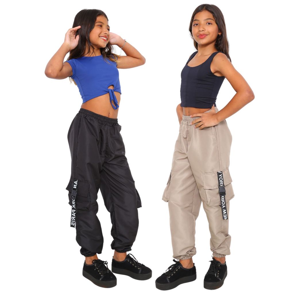 PROMOÇAO KIT 3 Calça Infantil Feminina Para Meninas Estilosas Calça Jogger Cargo 4 Bolso Tecido Tactel Moda Crianças