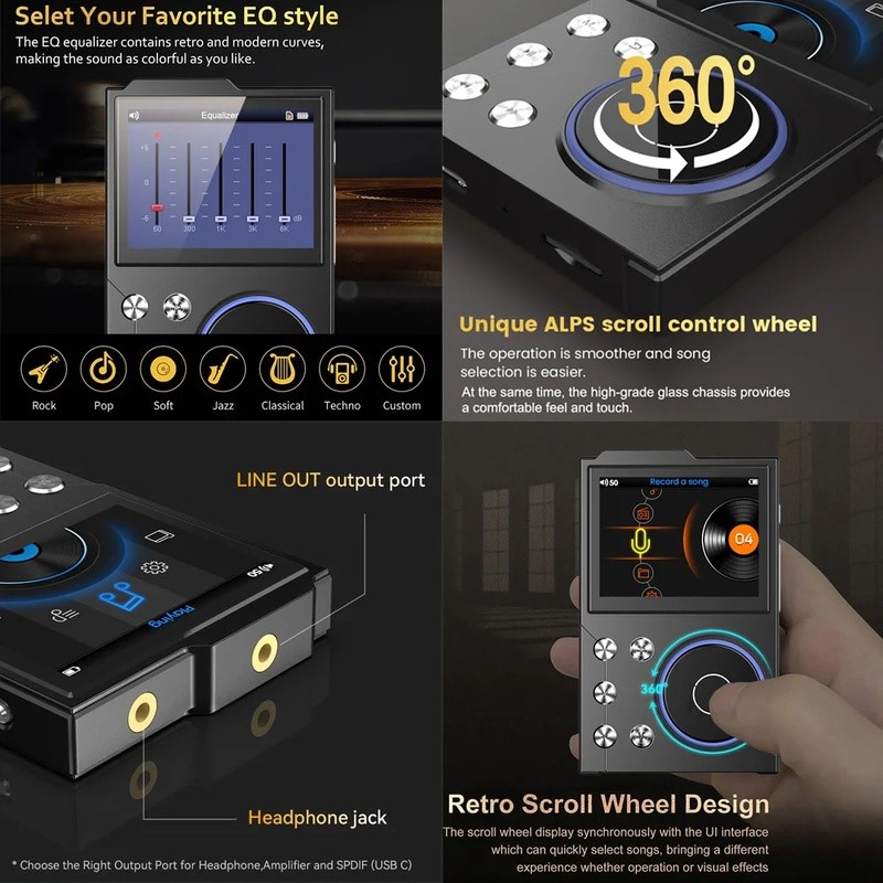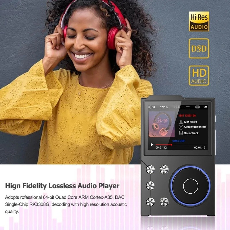Hi-Fi MP3 Player Bluetooth 5.0 Lossless DSD DAD Alta Definição Contratado Áudio Digital 2.4 Polegada MP3 Walkman Embutid