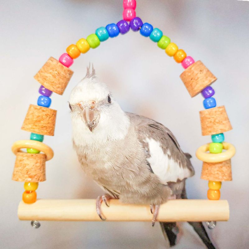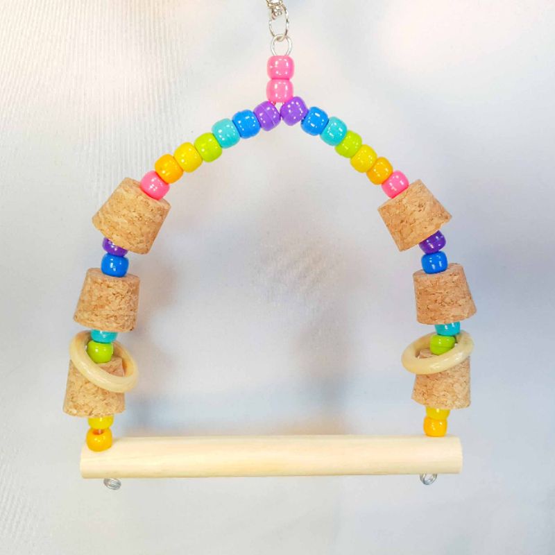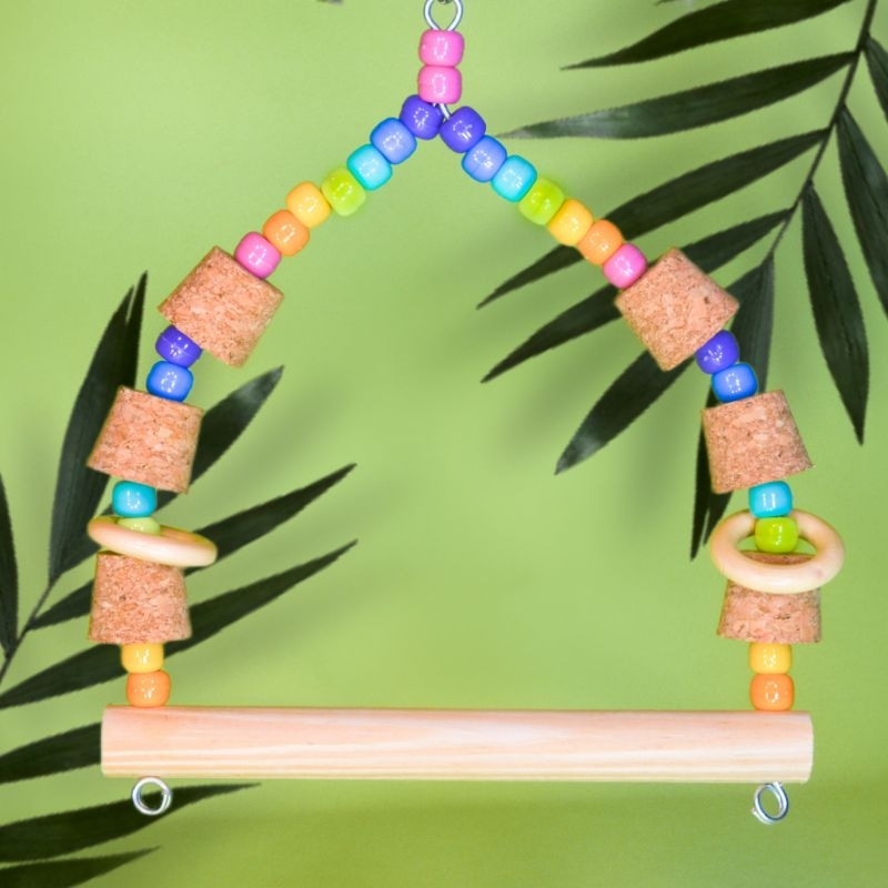 Balanço Com Rolhas e Argolas para Calopsita, Periquito, agapornis brinquedo, aves de pequeno a médio porte