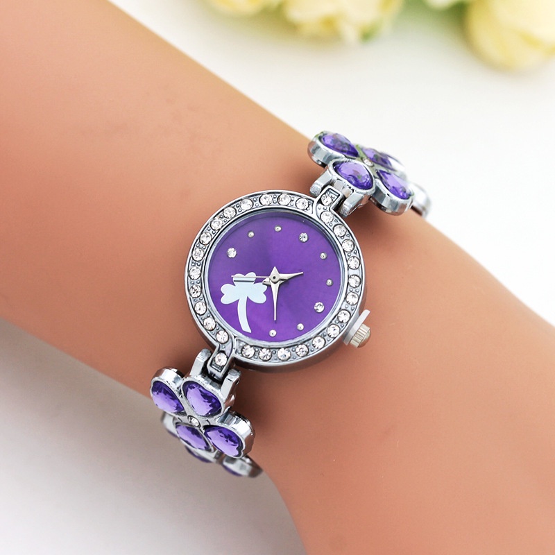 Relógio De Pulso Feminino De Quartzo Com Pulseira Trevo De Quatro Folhas