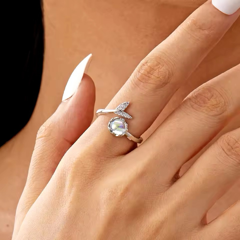 Anel azul cristal sereia cauda Ajustavel prata 925 para mulheres festa jóias acessórios