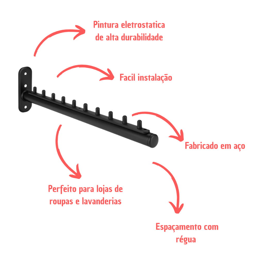 Arara Cabideiro Rt De Parede 40cm Para 10 Cabides com Parafusos e Buchas