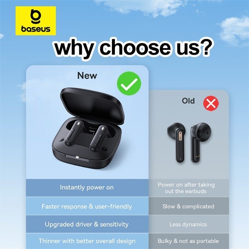 Fone de Ouvido Baseus E16 Bluetooth 5.3 Resistente a Água e Poeira, Carregamento Rápido, até 30 Horas de Bateria