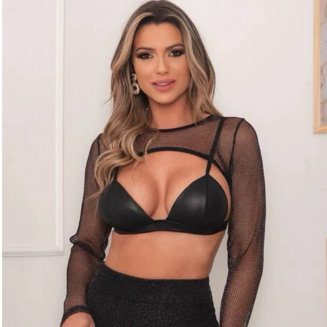 Top Cropped Sutiã Cirrê com Bojo Triângulo Alça Ajustável | Lingerie Festa Balada Noite