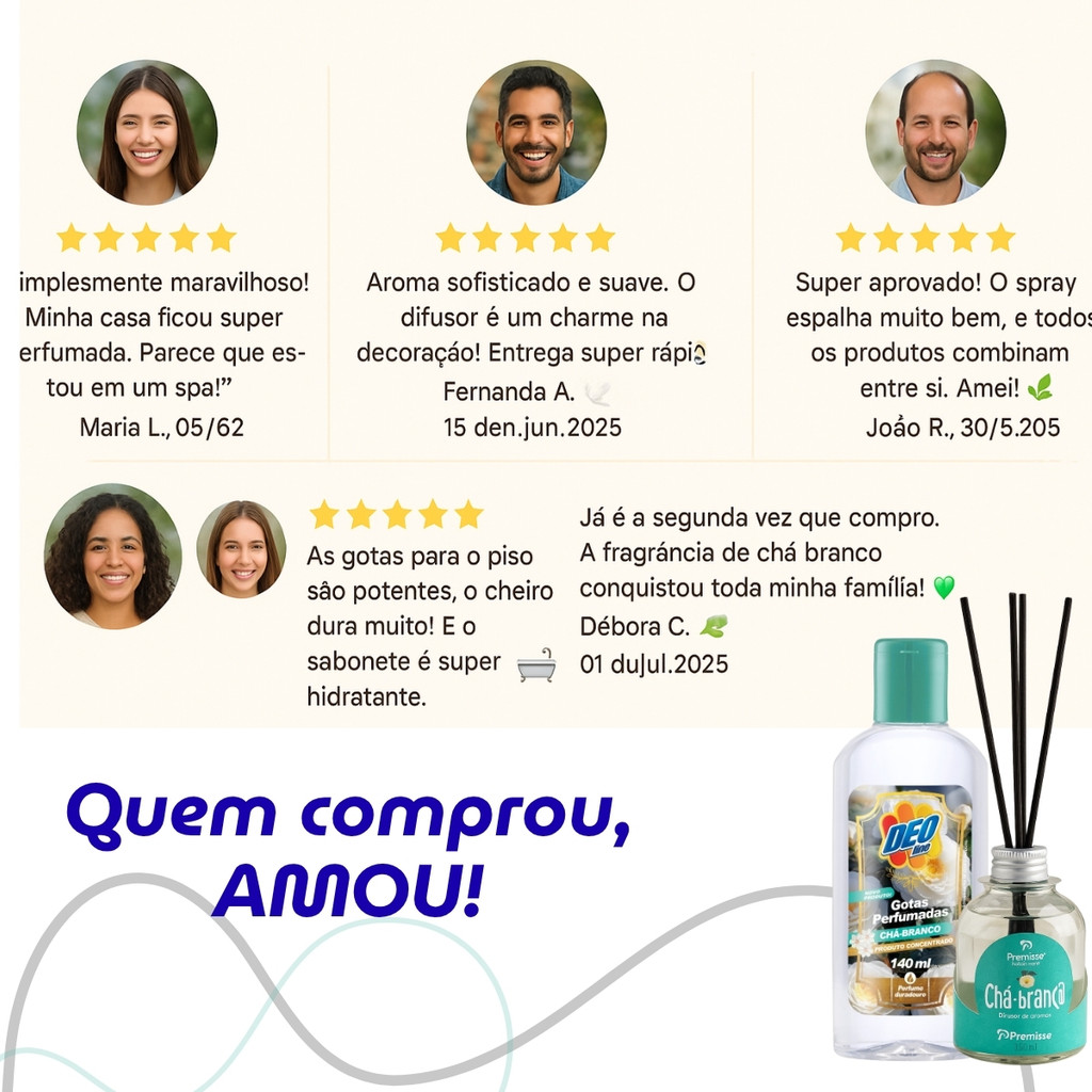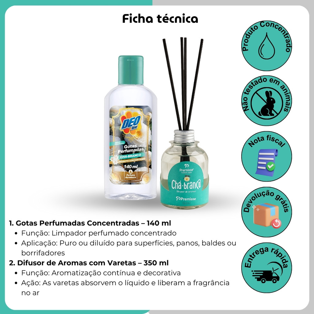 Kit Limpador Premisse Purificador de Ambiente Concentrado Difusor com Vareta Gota Casa Fragancia
