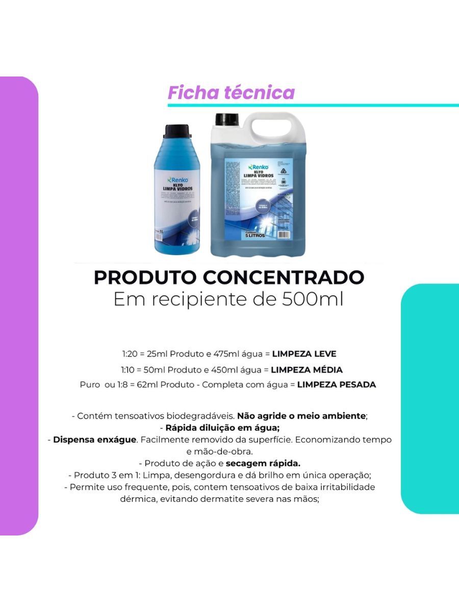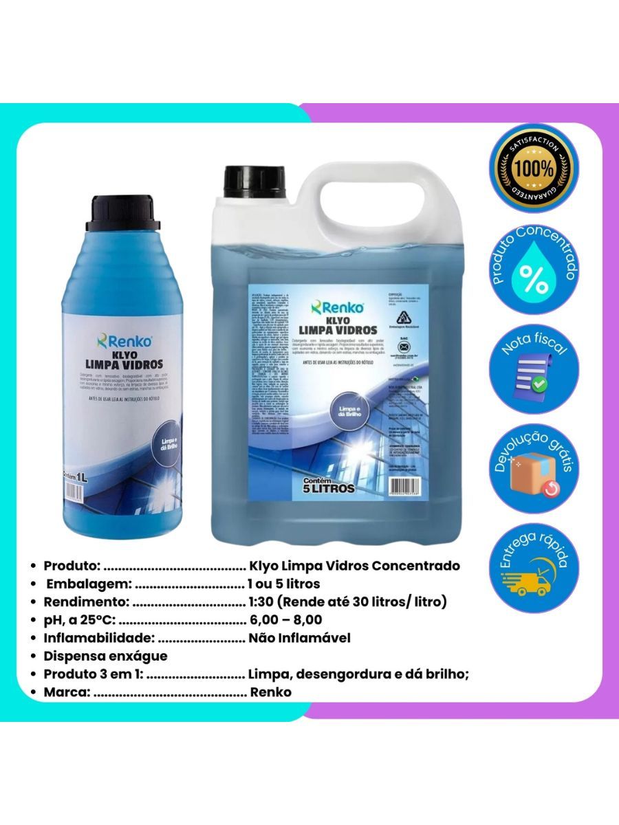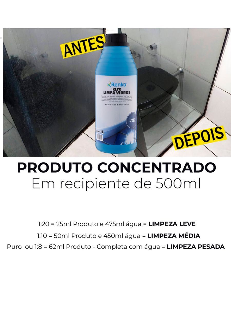 Klyo Limpa Vidros Profissional Renko Concentrado 1l Rende Até 30 Litros