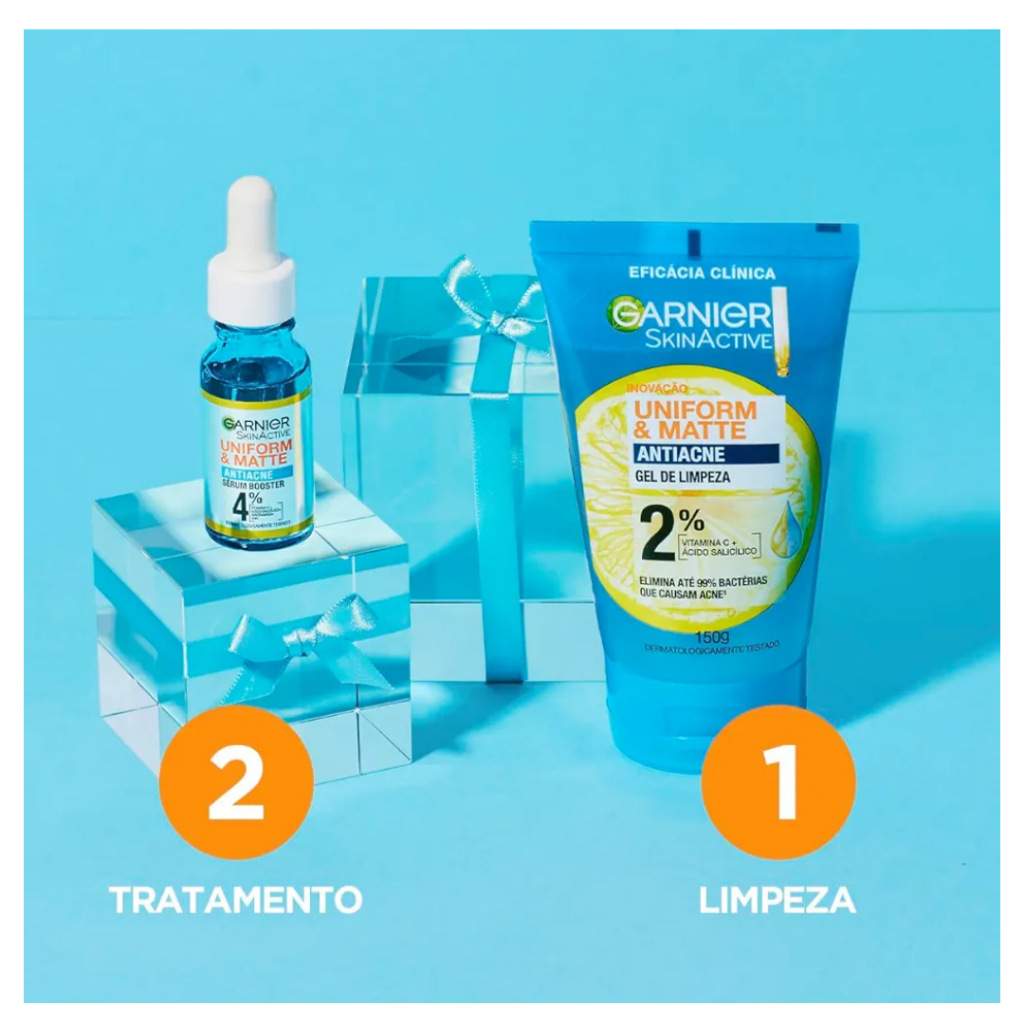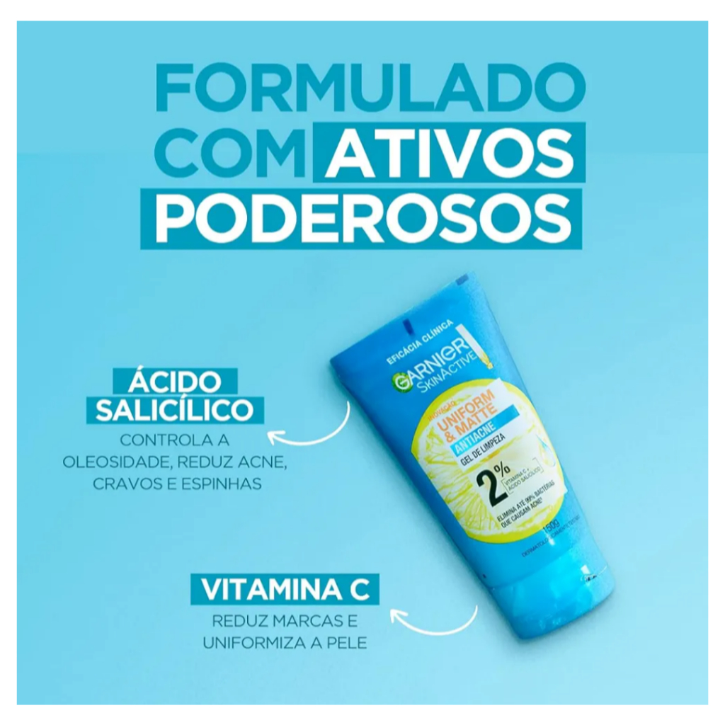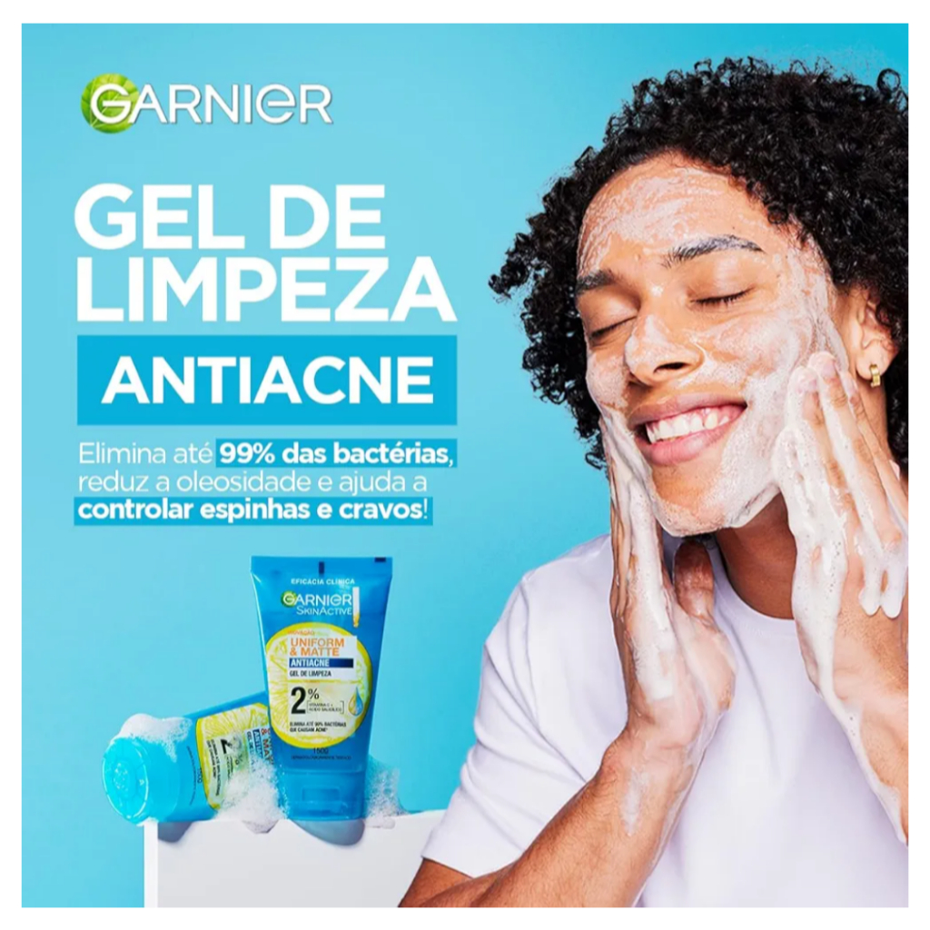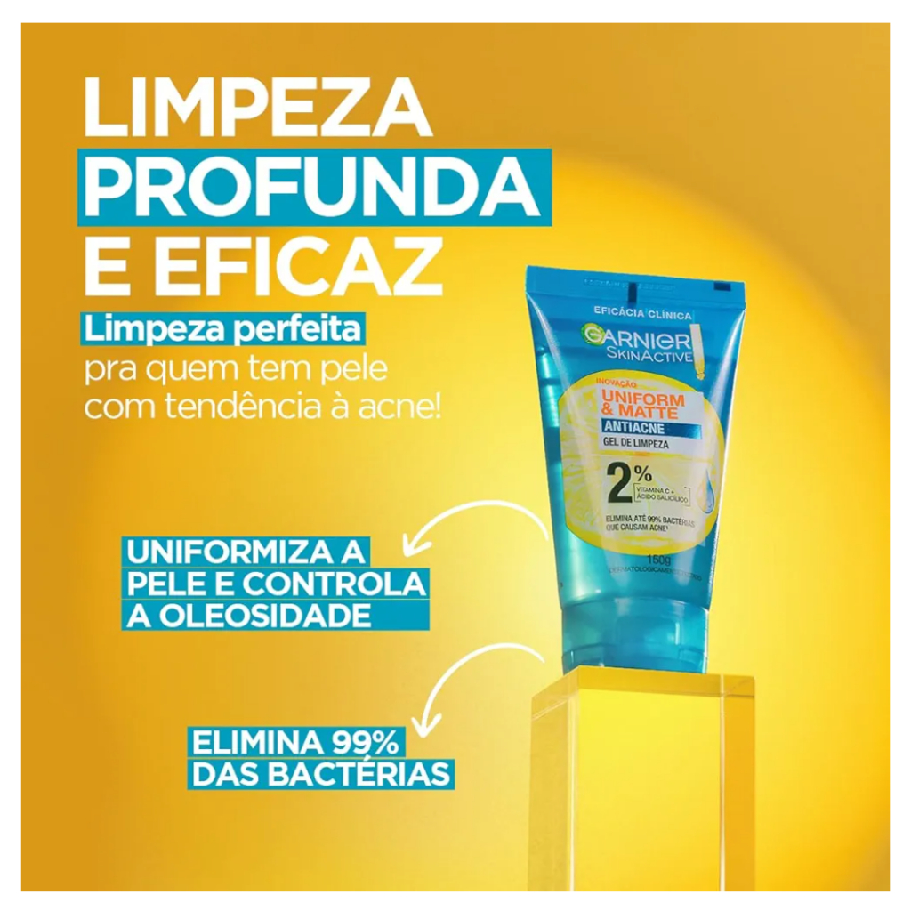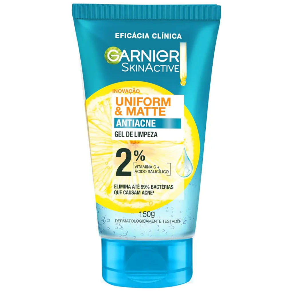 Gel de Limpeza Facial Garnier Uniform & Matte Antiacne, Elimina bactérias, Reduz Acne e Controla a Oleosidade, 150g