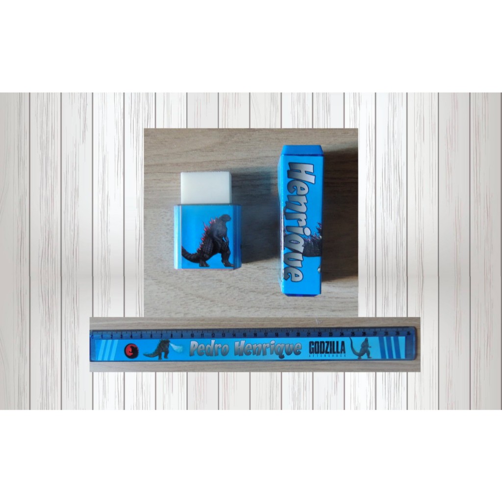 Kit Material Escolar Personalizado Nome - Godzila ou Qualquer Tema - Festa e Brindes
