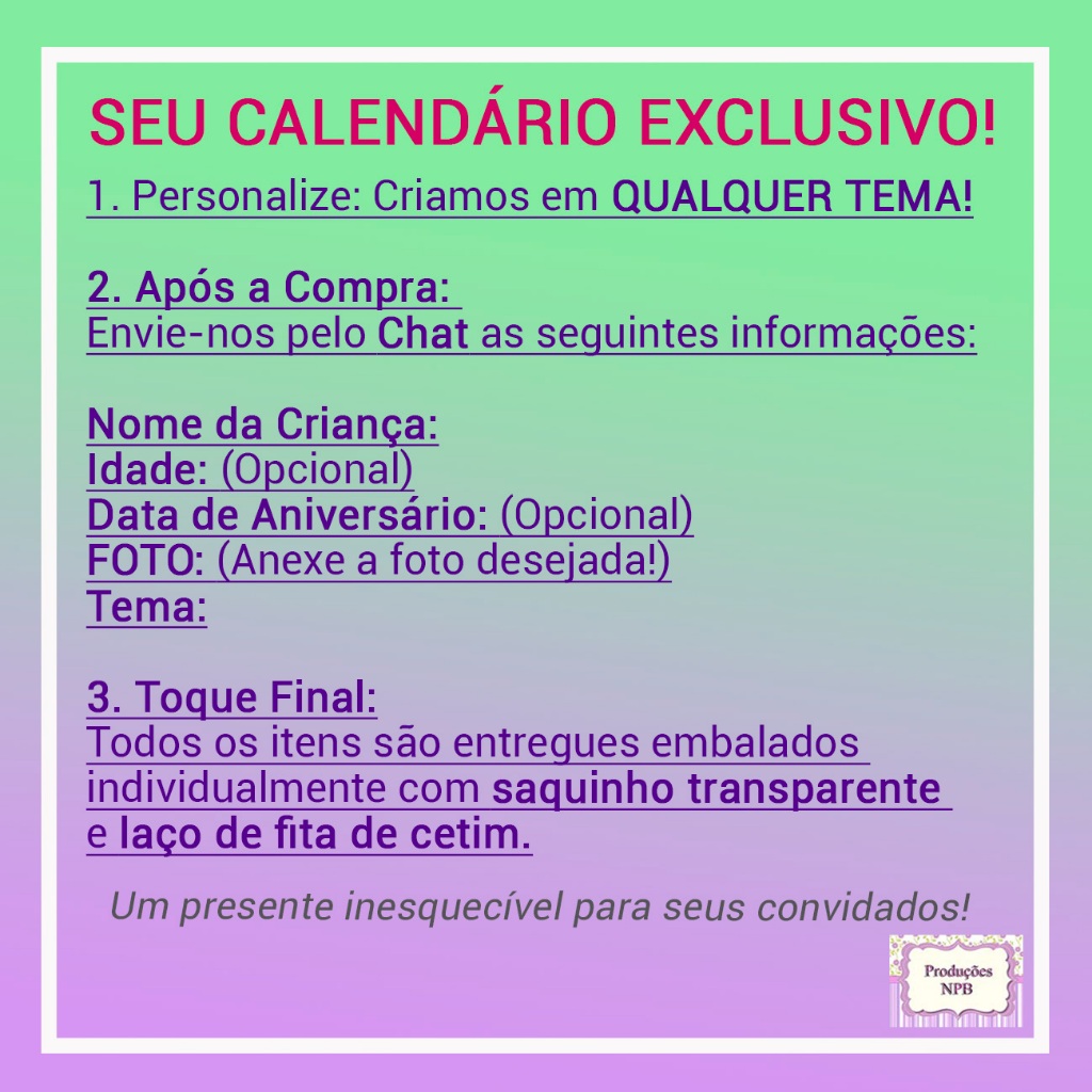 Mini Calendário 2027 Personalizado Imã de Geladeira Lembrancinha Festa e Brindes - Qualquer Tema