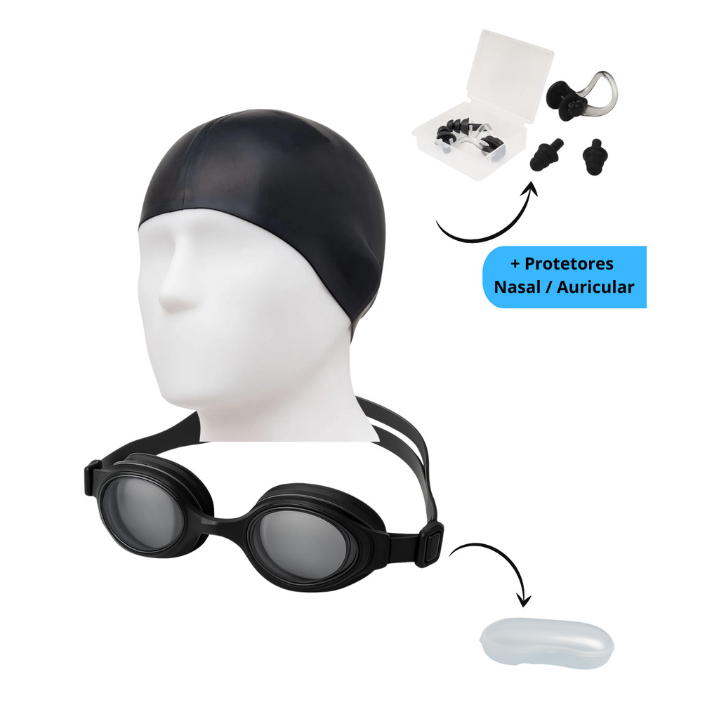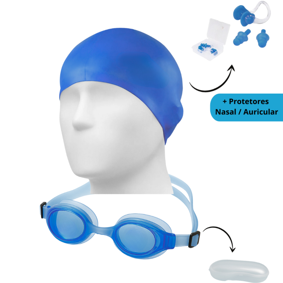 Kit de Natação Óculos Touca e Protetor Tampão Nasal/de Ouvido Juvenil Adulto