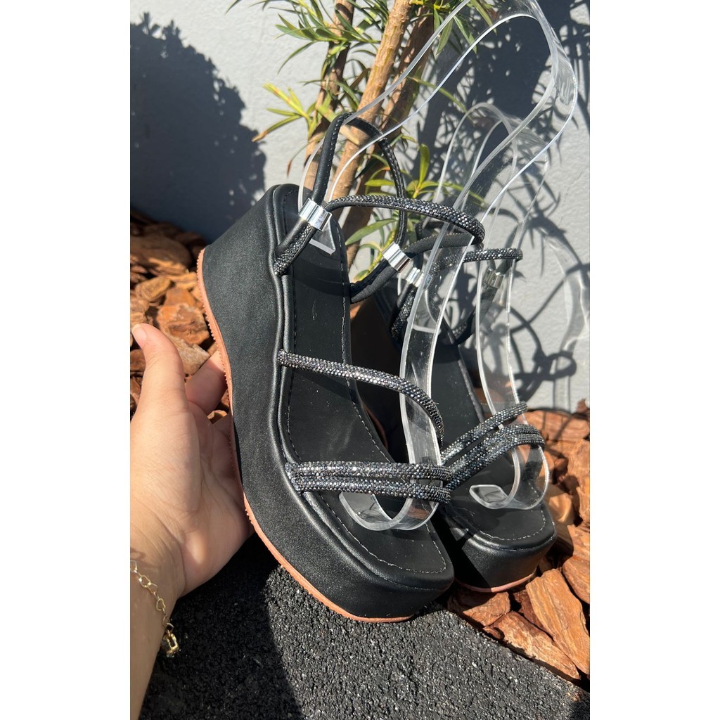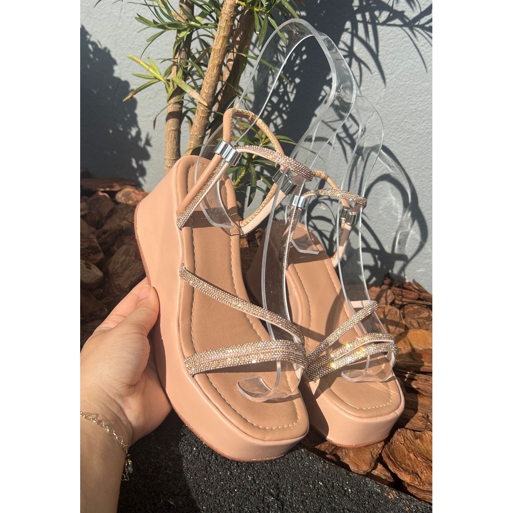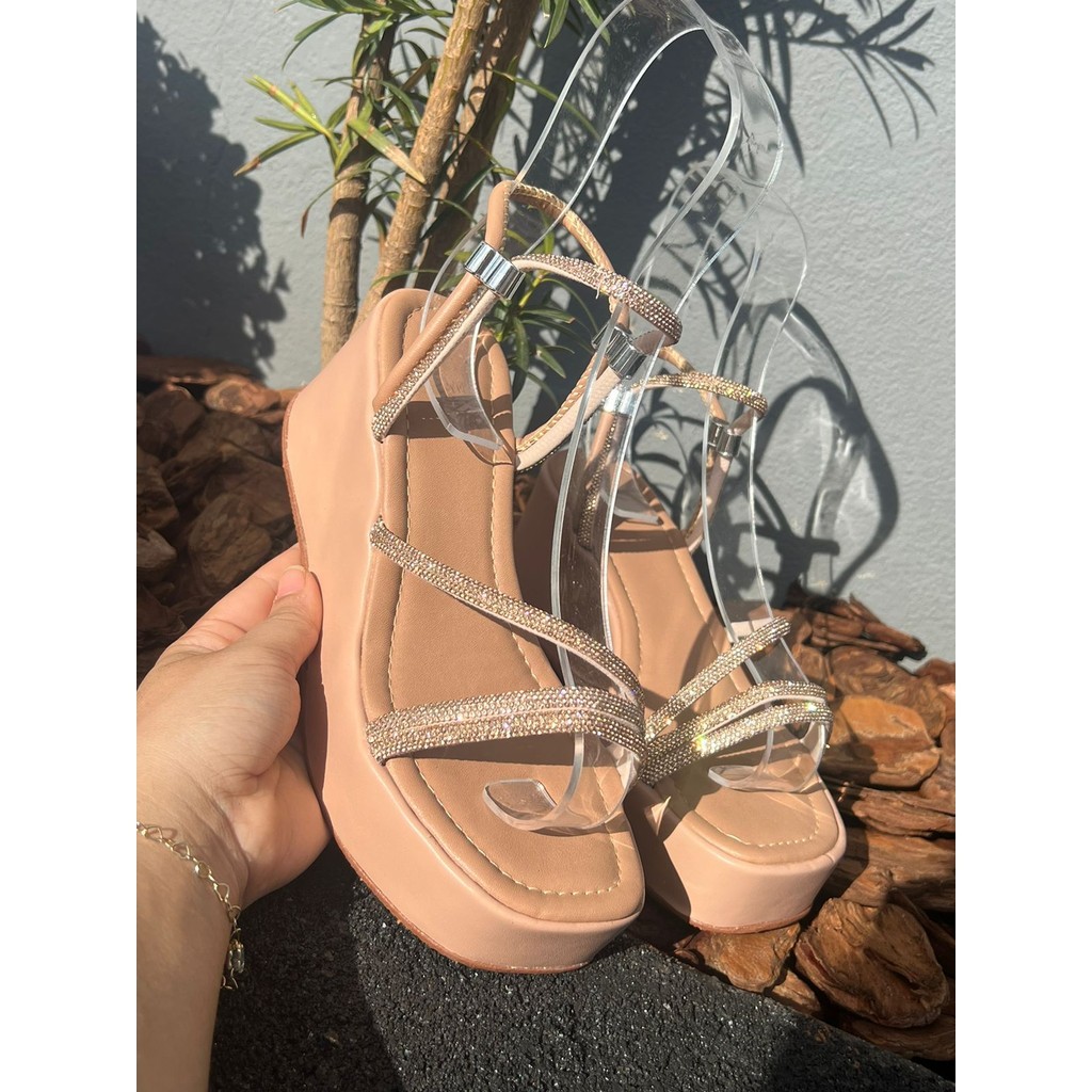 Sandália Anabela Plataforma Regulador Strass Feminina