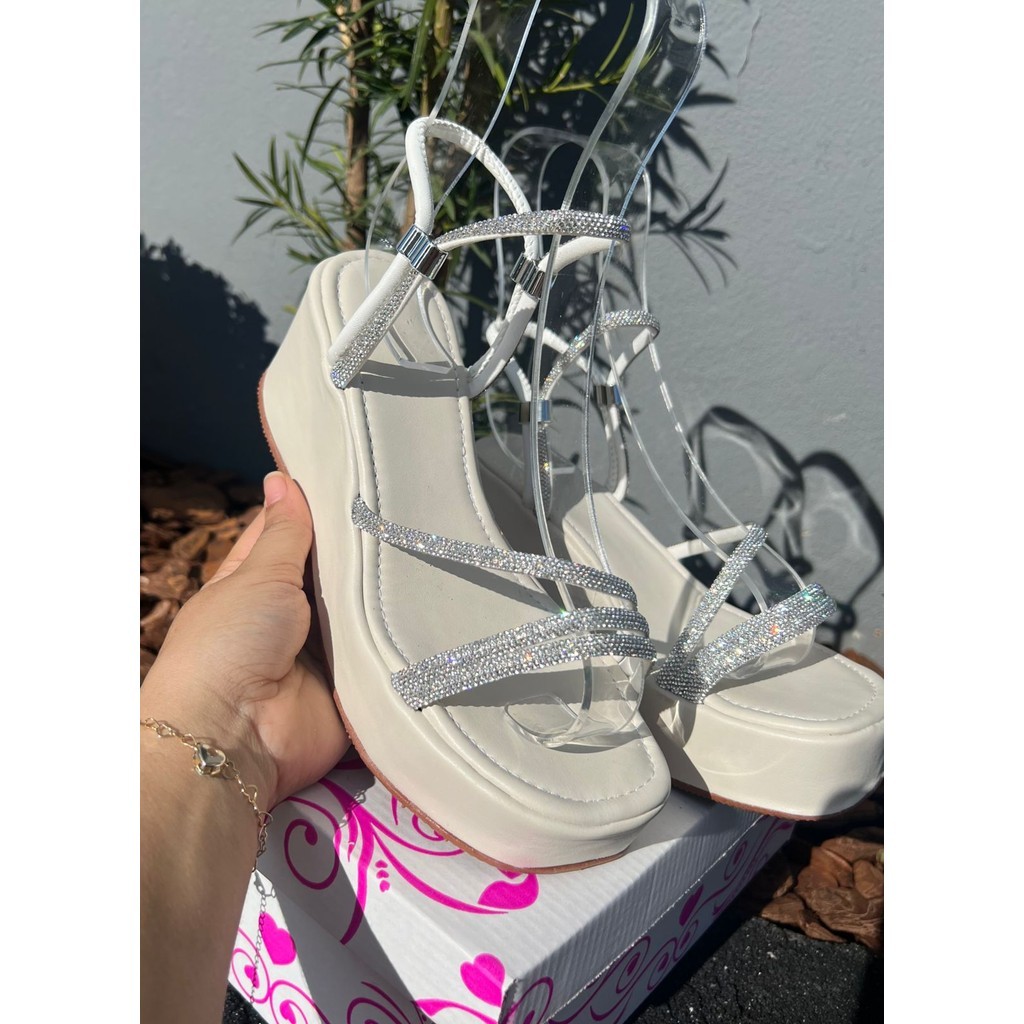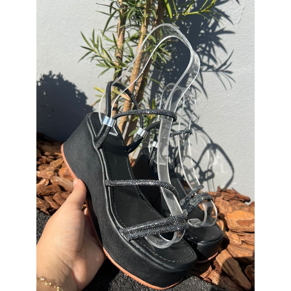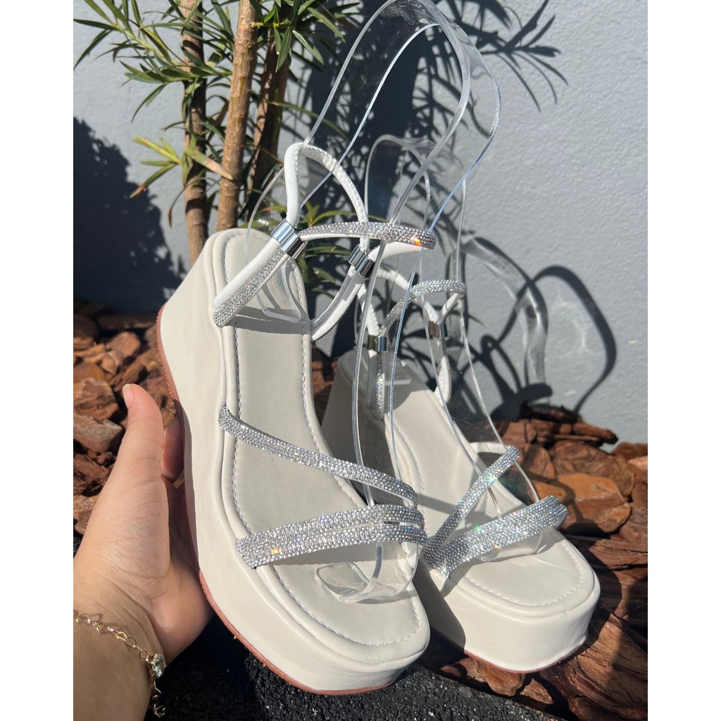 Sandália Anabela Plataforma Regulador Strass Feminina
