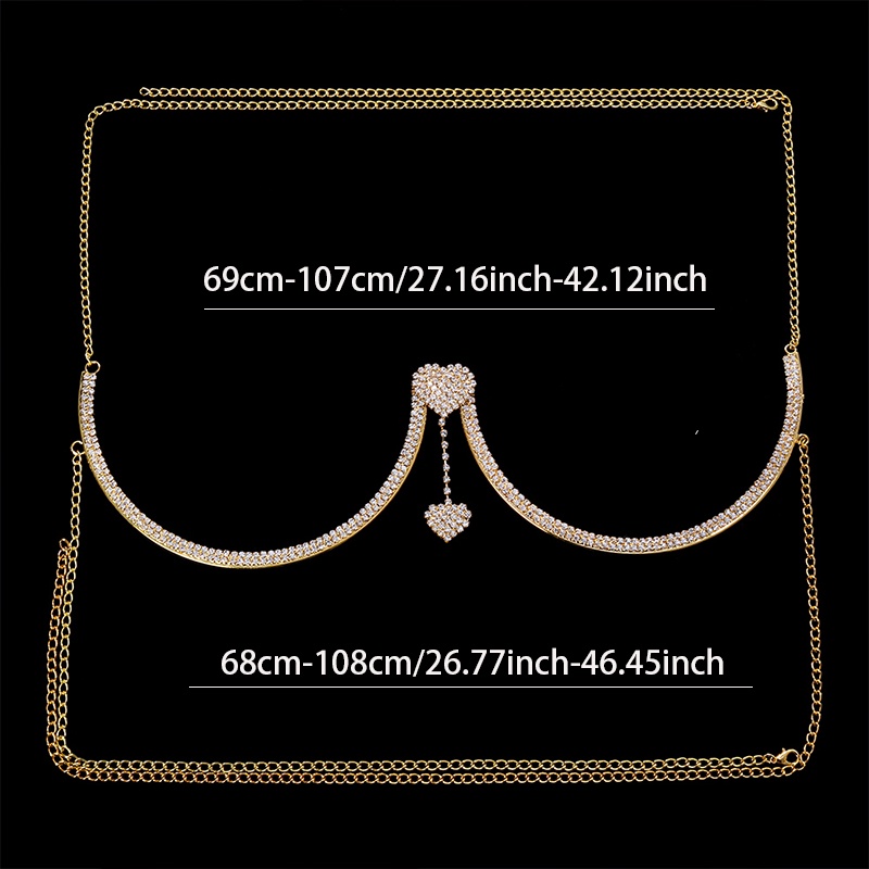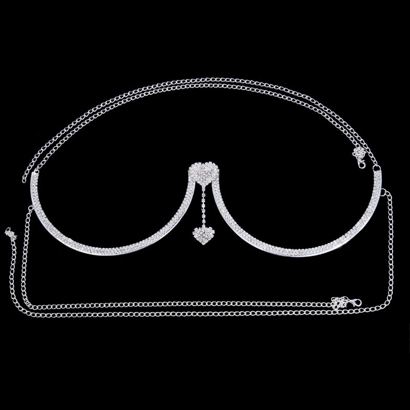 Biquíni De Praia Feminino Suporte De Peito Pingente Duplo Colar De Coração De Sutiã Corrente Jóias Corporais Rhinestone Top Fashion Gift
