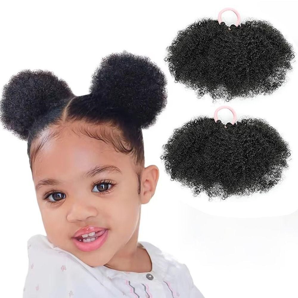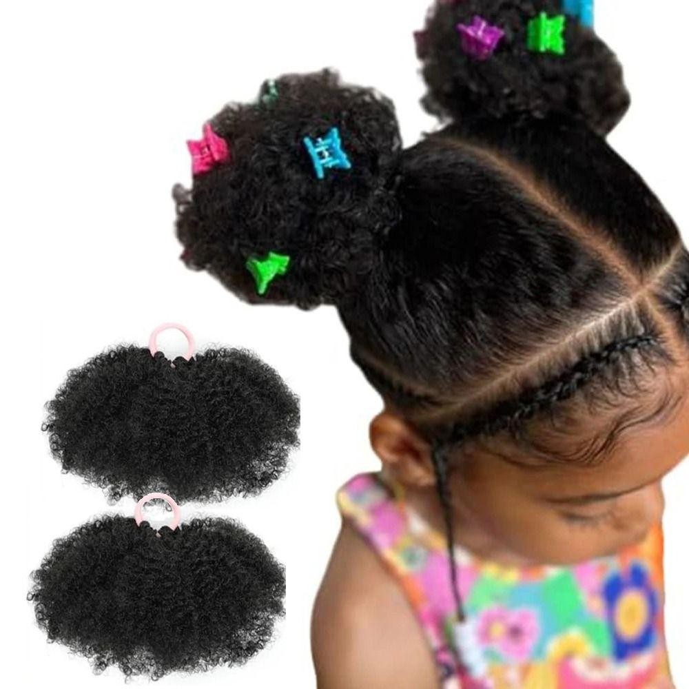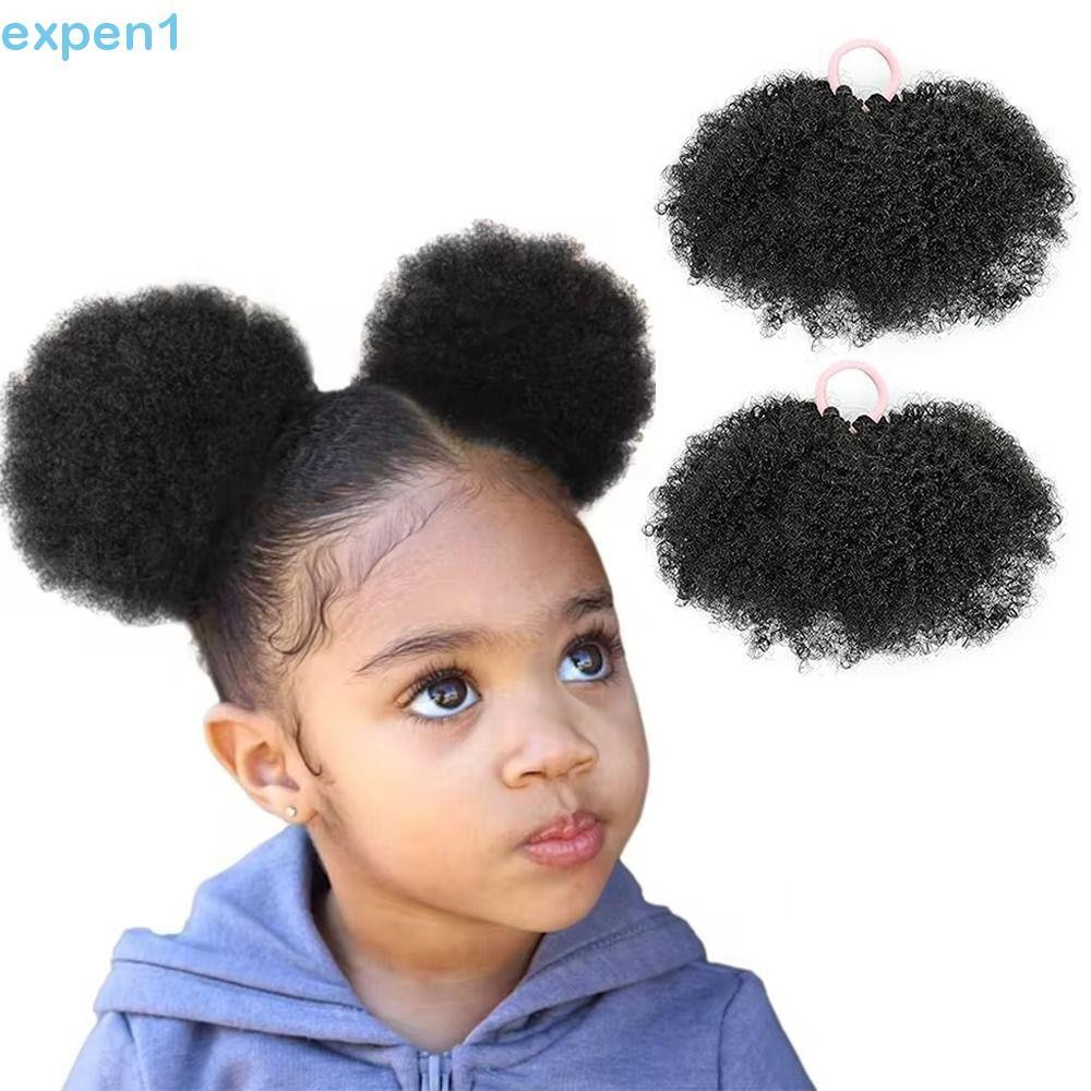 EXPEN 2 Peças Mini Coque De Cabelo Encaracolado Afro , Alto Preto Infantil Rabo De Cavalo Sintético , Pedaço
