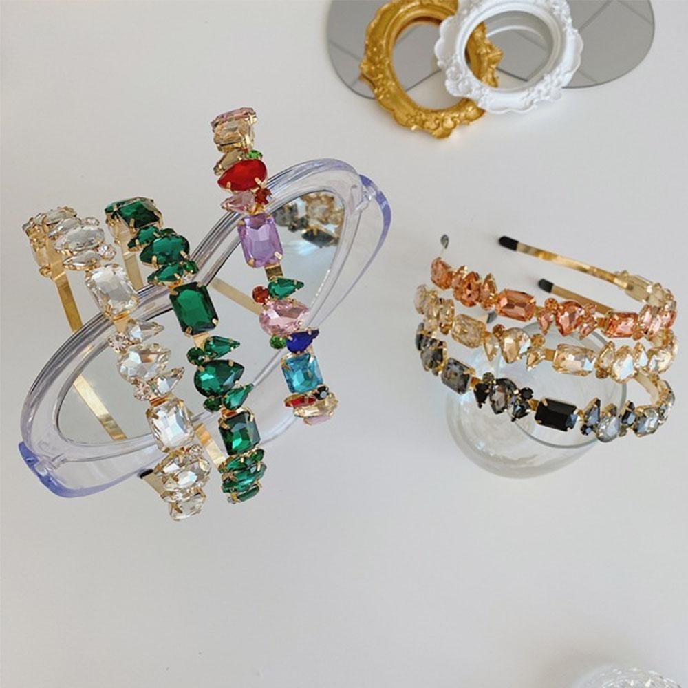 Expen Faixa De Cabelo Versátil De Luxo Com Pedras Strass E Cristais Em Formato De Strass / Multicolorido