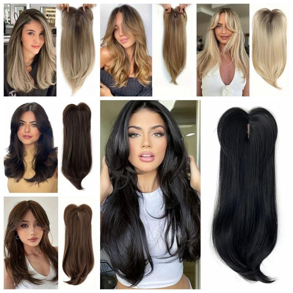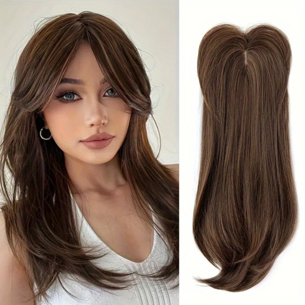 LANFY Topper De Cabelo Em Camadas Com Franja , Clipe De Extensões Toppers Sintético , 22 Polegadas
