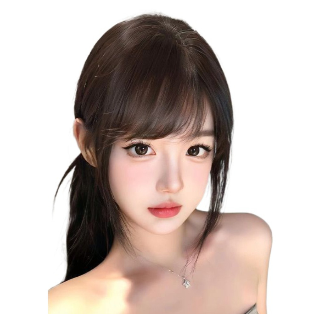 LANFY Franja Lateral De Cabelo Humano , Extensão Natural , Franjas Frontais Invisíveis Marrons Retas