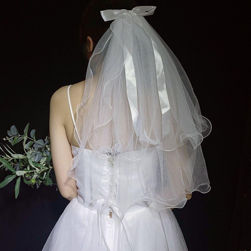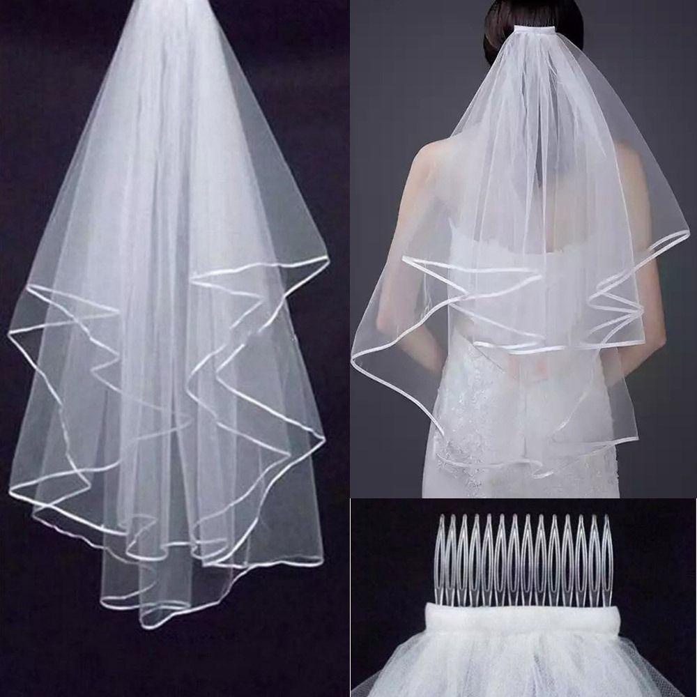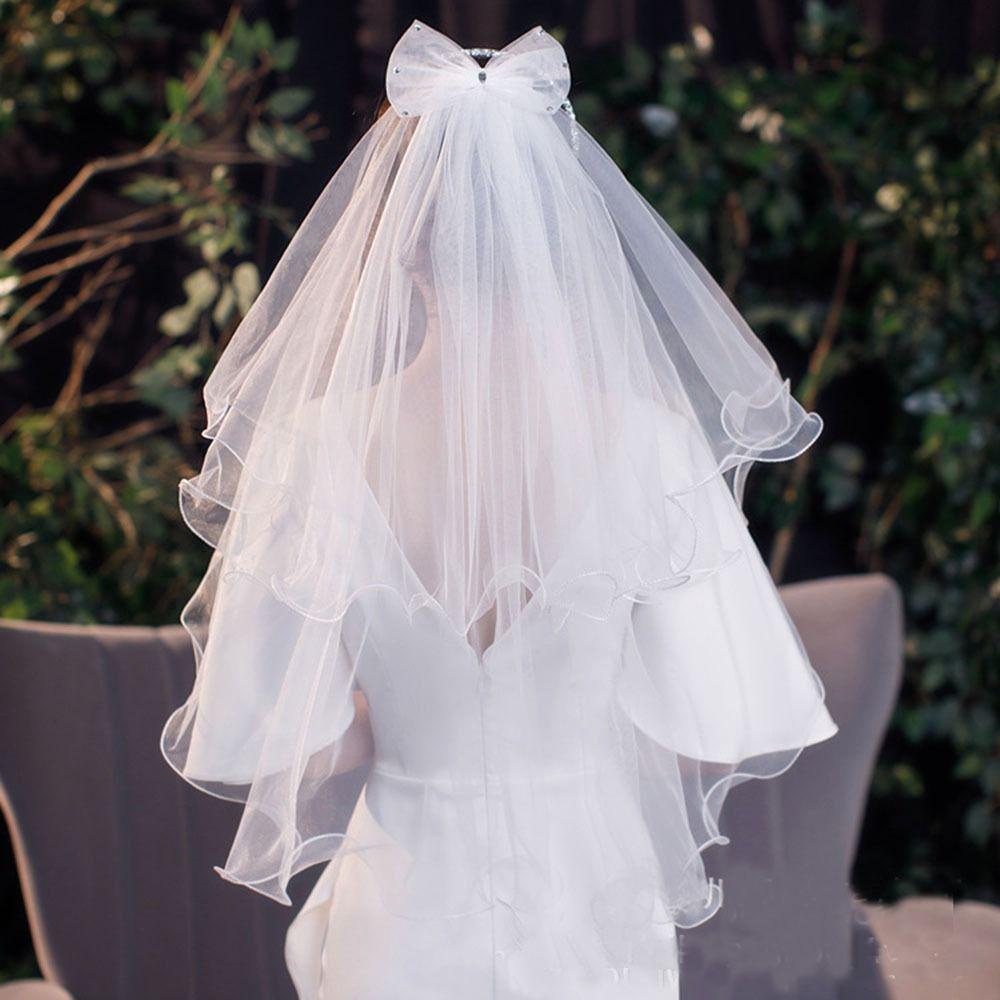 Véu OYY Noiva Novos Acessórios De Casamento Duas Camadas Curto Simples Borda De Renda Com Pente