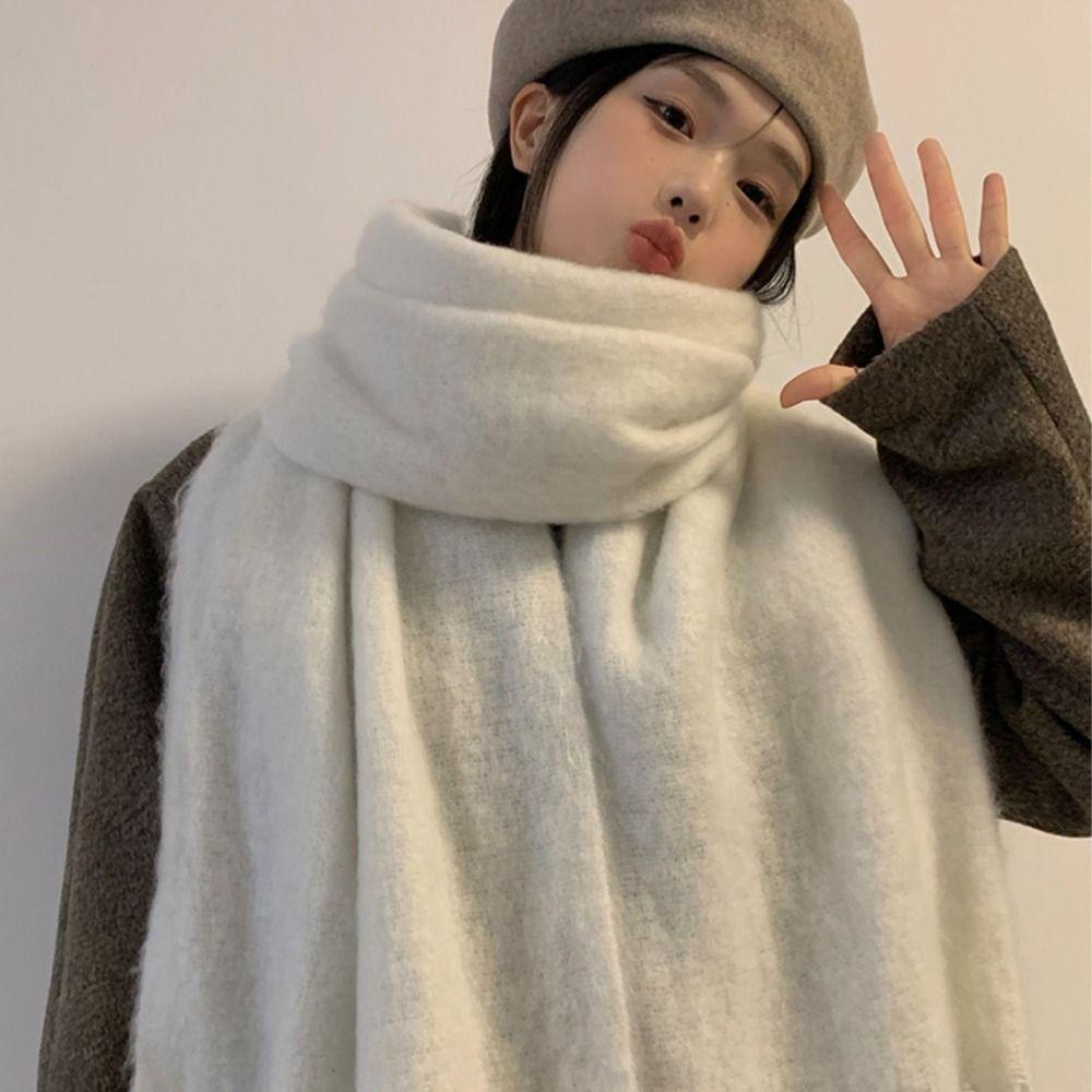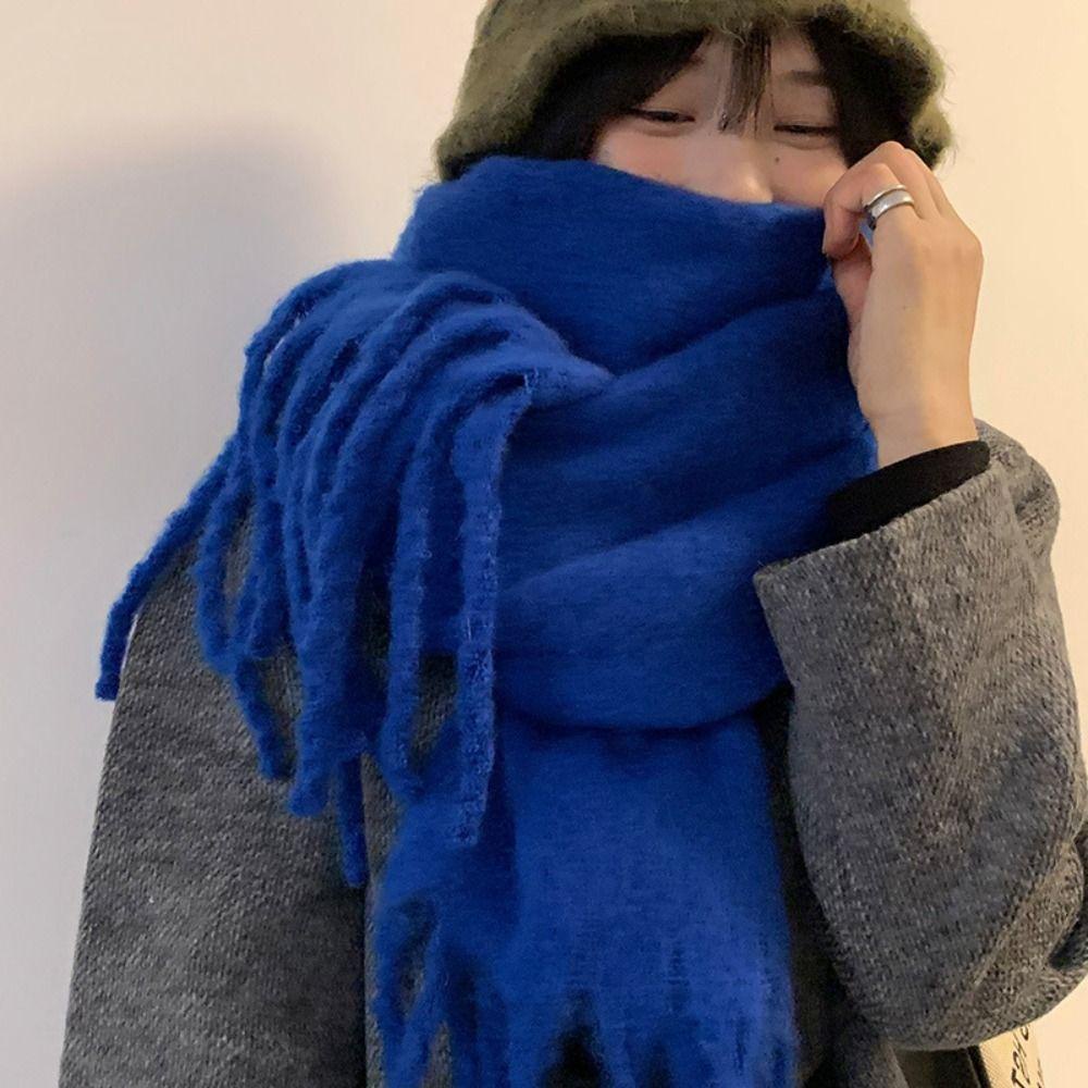 YEE Winter Cachecol De Caxemira , Mohair Long Tassel Scarves , De Cor Sólida Espessada Mulheres