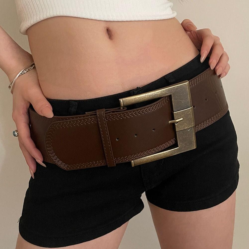 Cinto Largo De Couro YEE , Cintura Versátil E Moderna Com Fivela De Pino Feminina Faixas Grunge