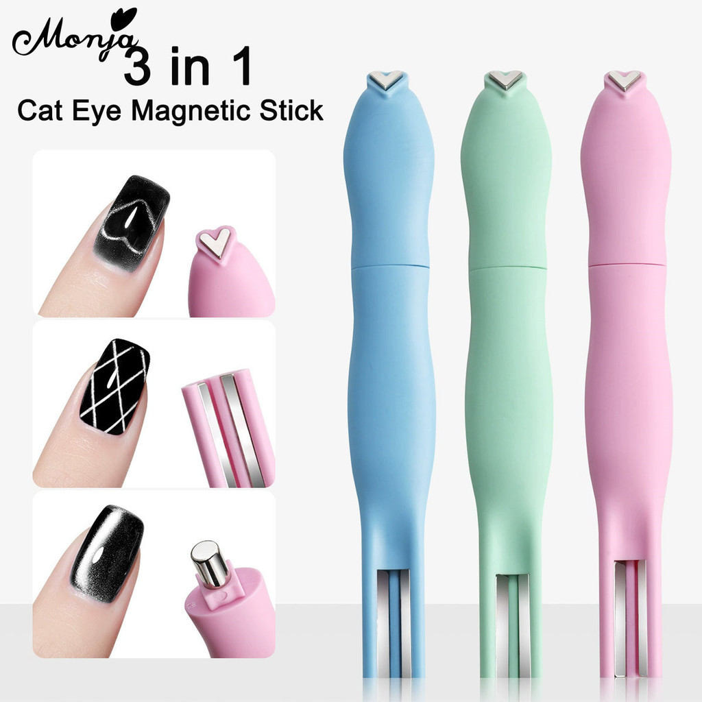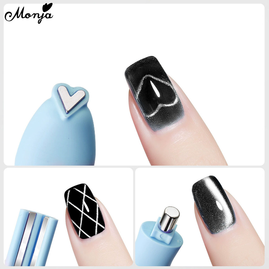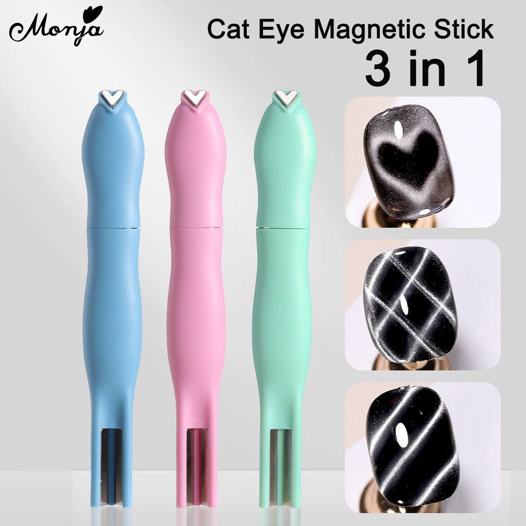 Monja 3 Em 1 Nail Art Olho De Gato Vara Magnética Destacável 3D Forma De Coração Ímã De Multifuncional Magnético Unhas D