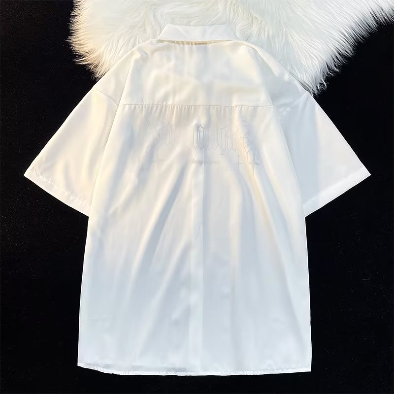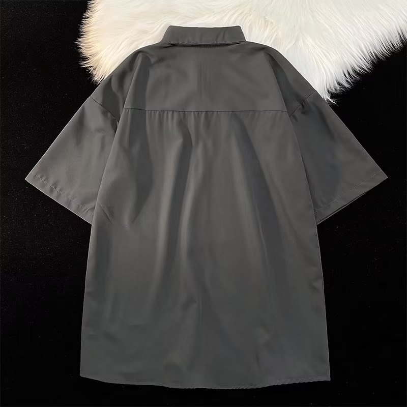 Japonês Homem Rua Hip Hop Estilo Popular Camisa Casual Estampada Tamanho Grande Drapeada