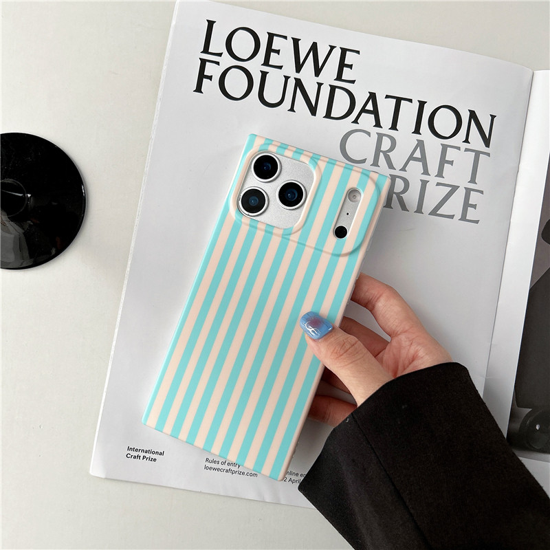 Capa Quadrada Listrada Bloqueada Em Cor Azul Laranja Doce Para iPhone 17 16 15 13 14 Pro Max