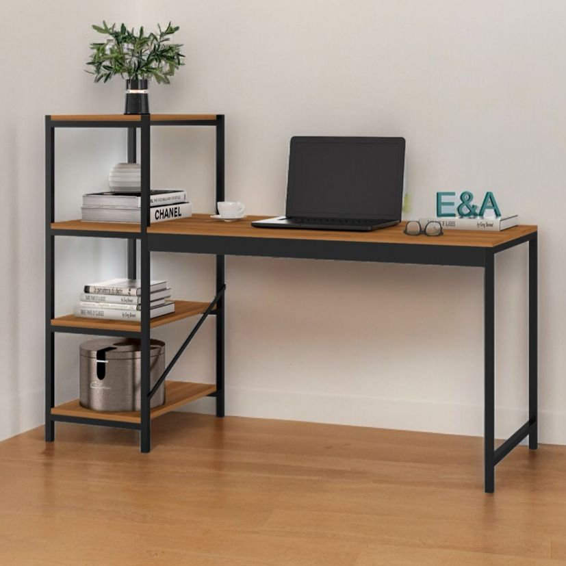 Mesa Home Office C/ 3 Prateleiras E&A - Preto/Canela