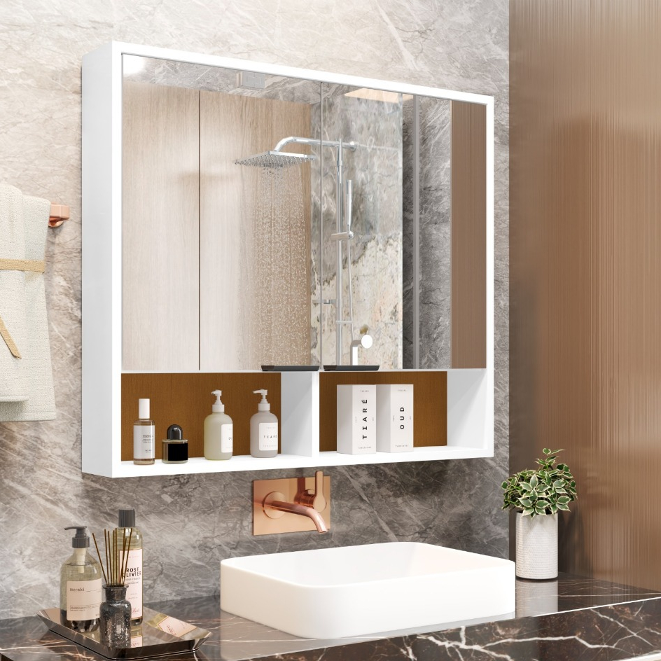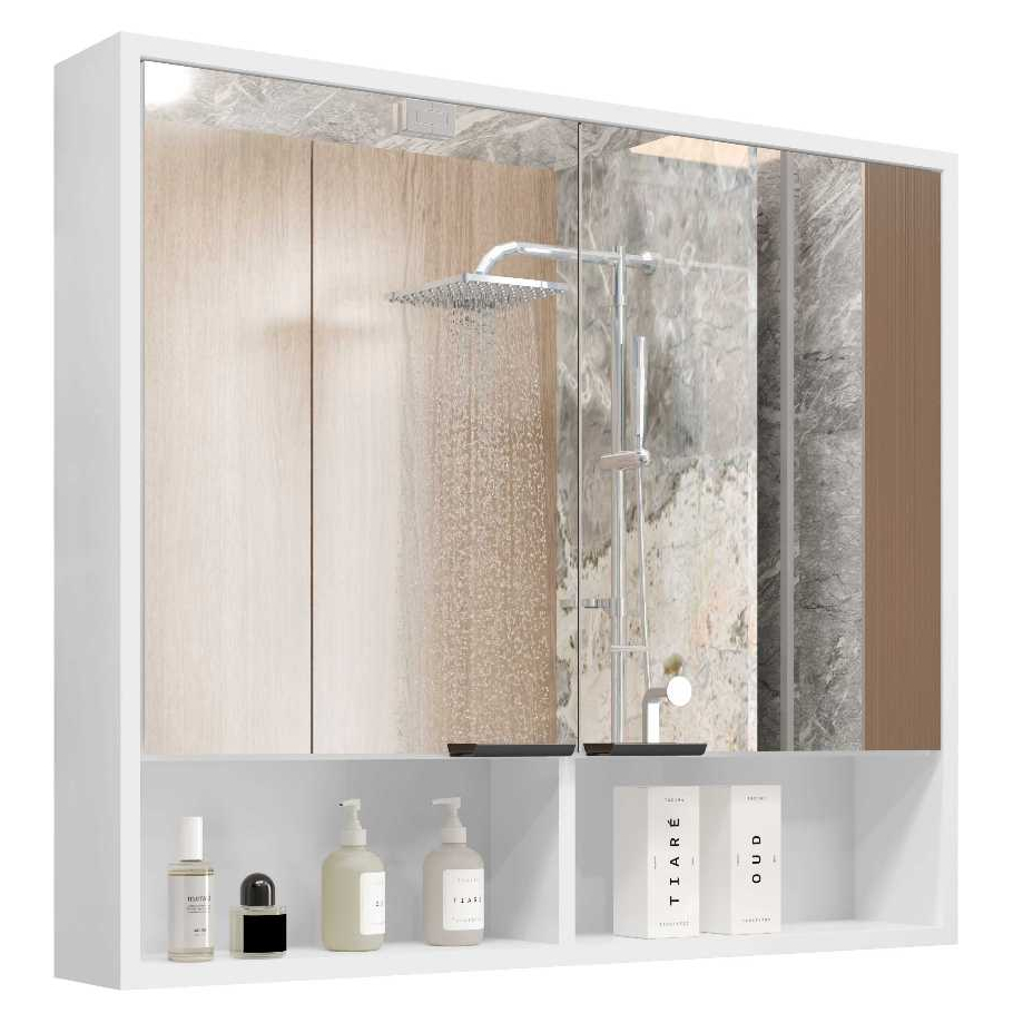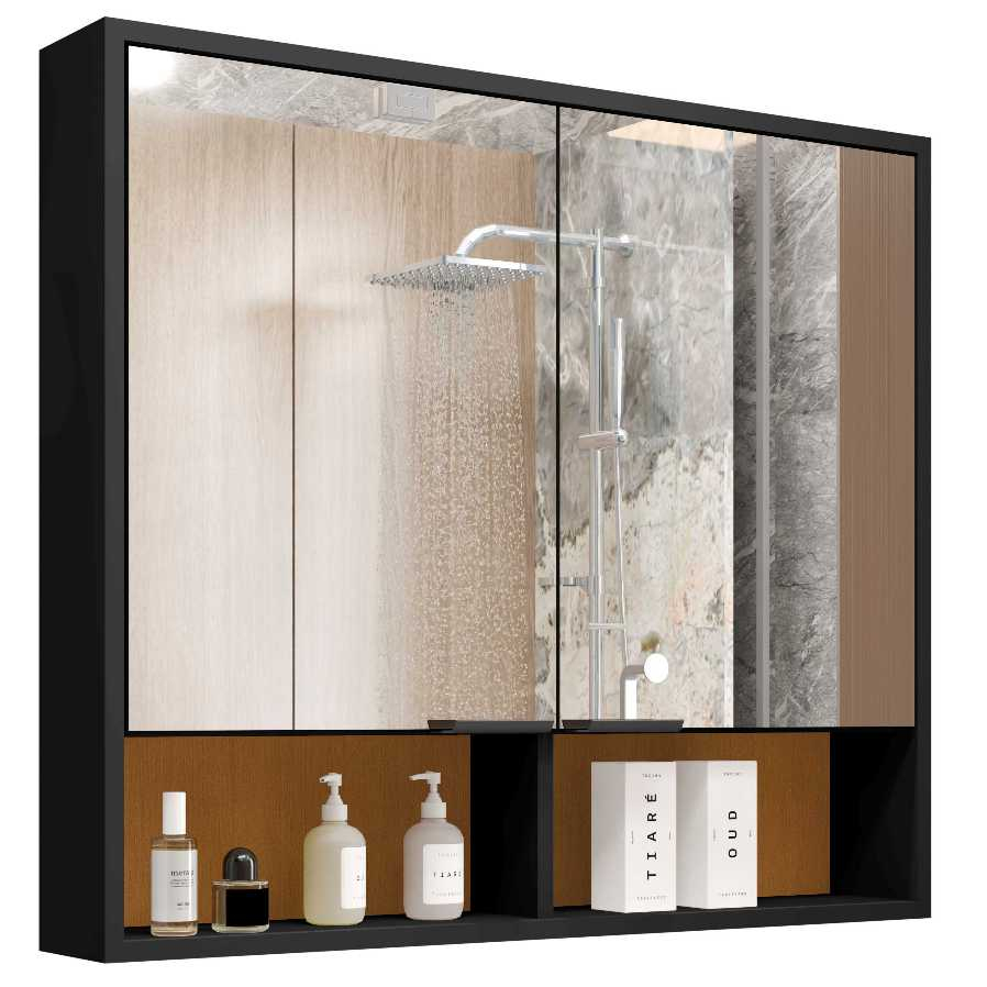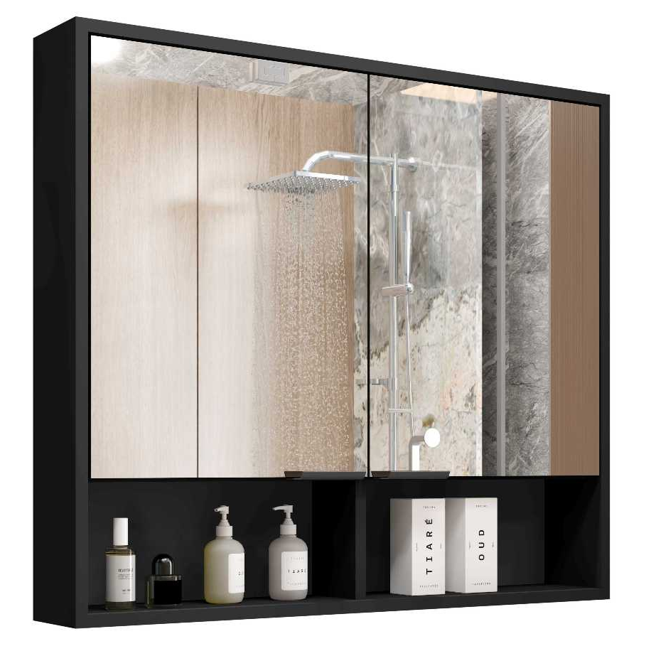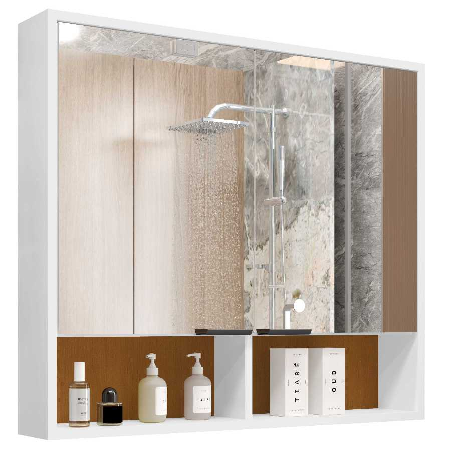 Armário de Banheiro Aéreo 2 Portas Com Espelho Espelheira Com Nicho Aquiles