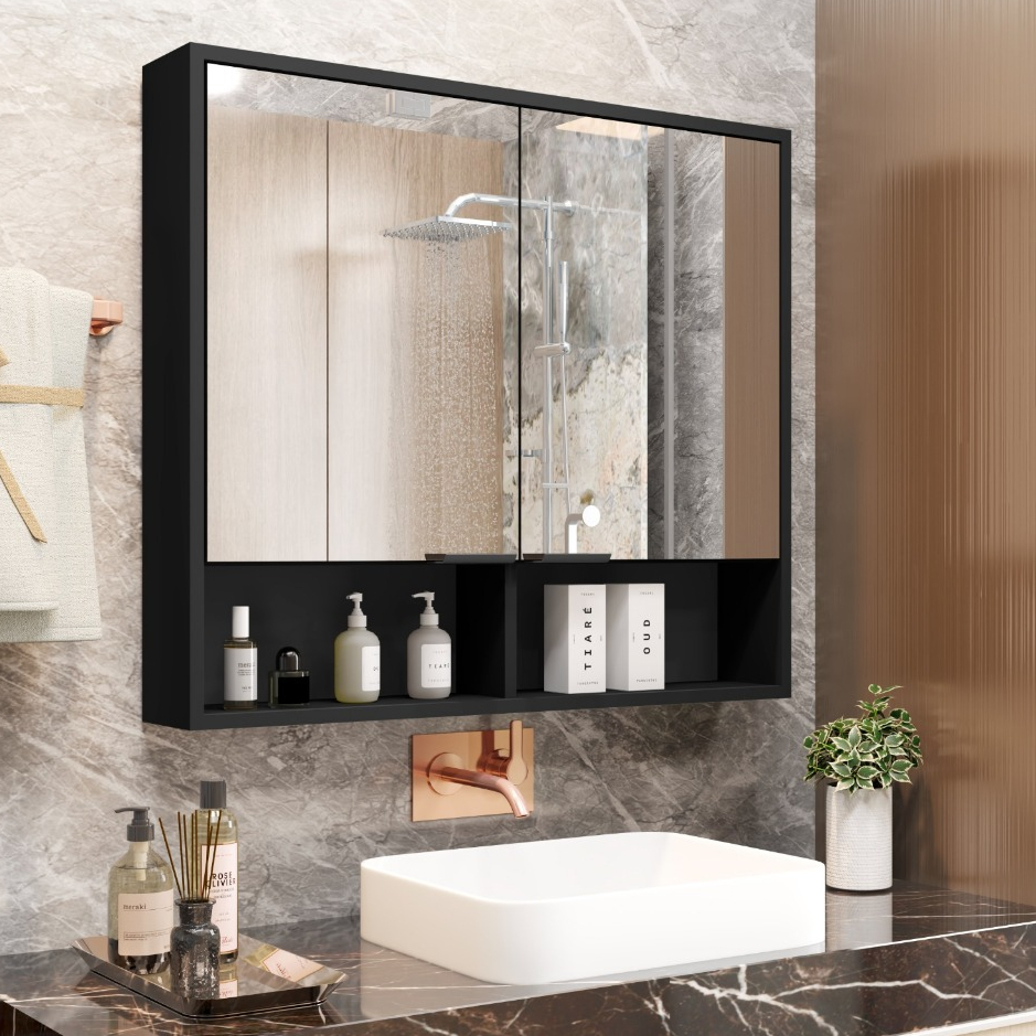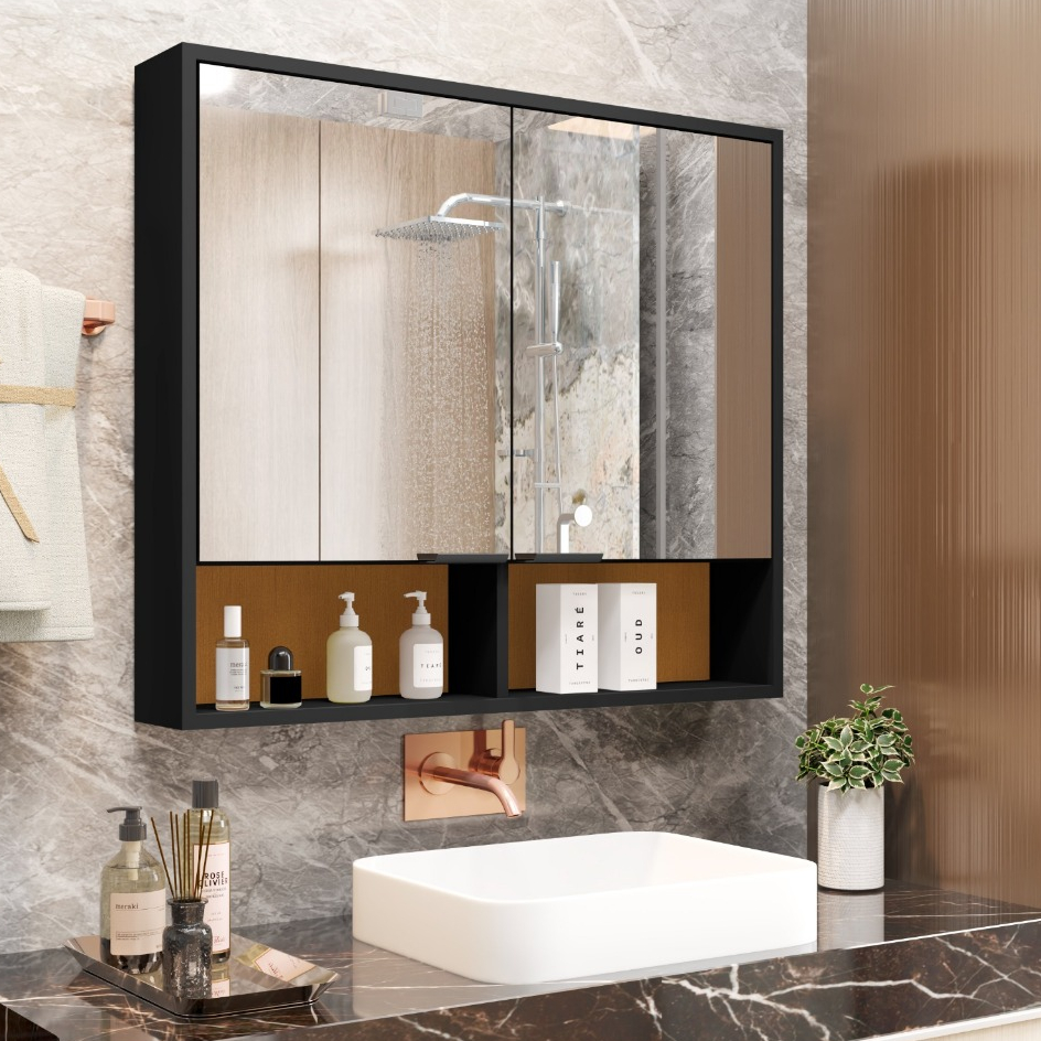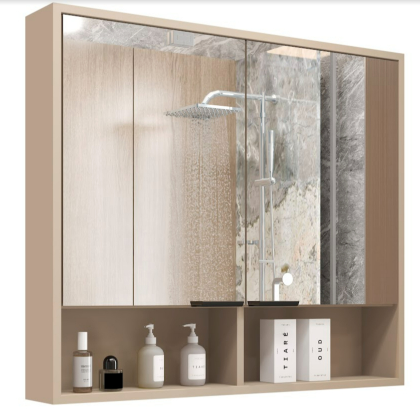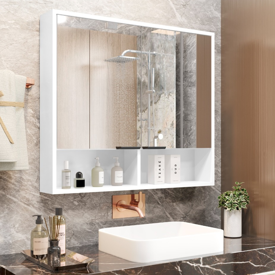Armário de Banheiro Aéreo 2 Portas Com Espelho Espelheira Com Nicho Aquiles