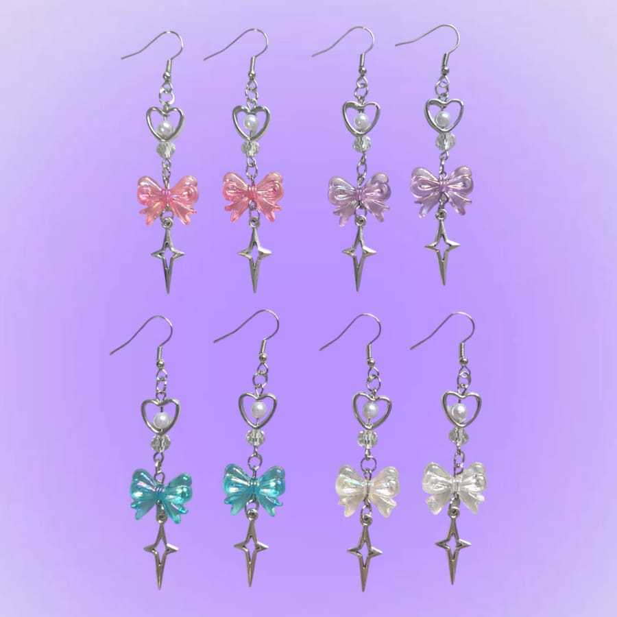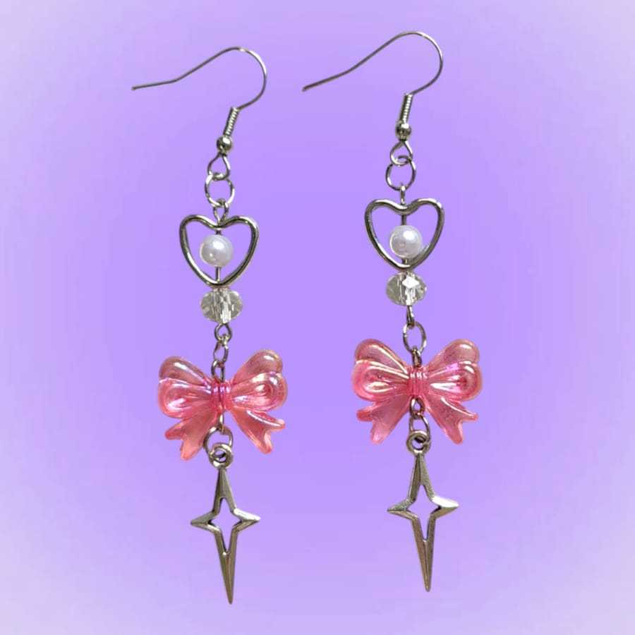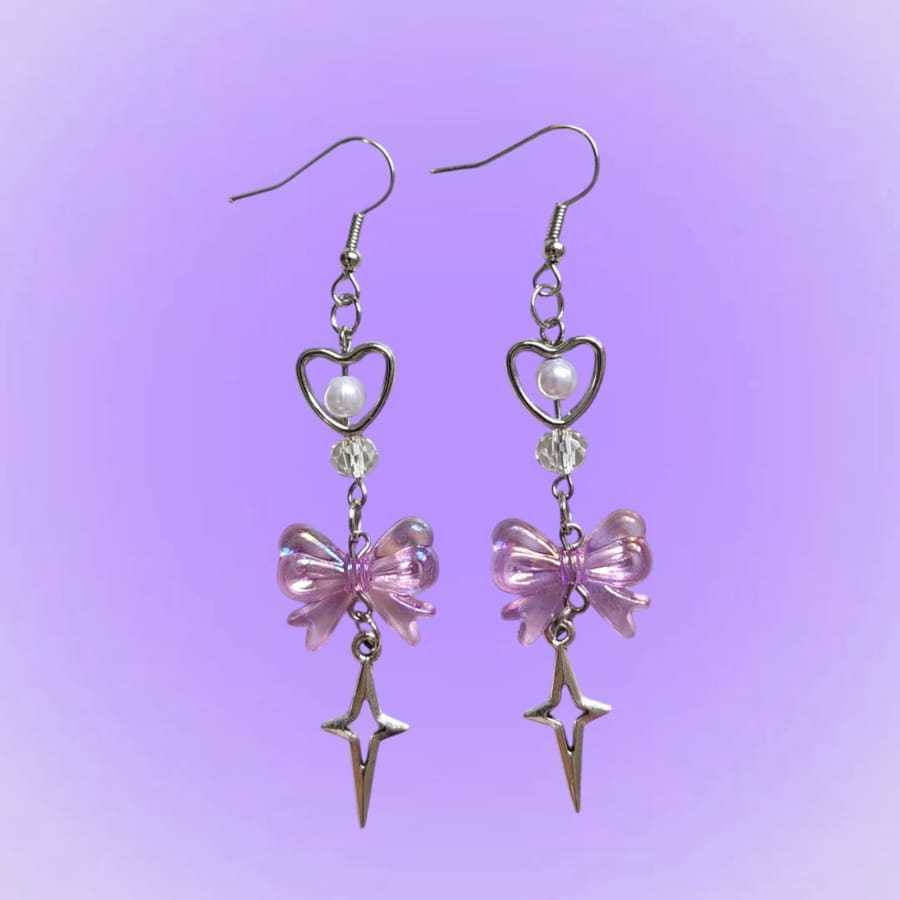Brinco Laço com Pingente de Cristal - Estrela elegante com Laço de Miçanga com Pingente de Cristal