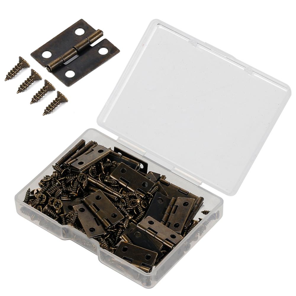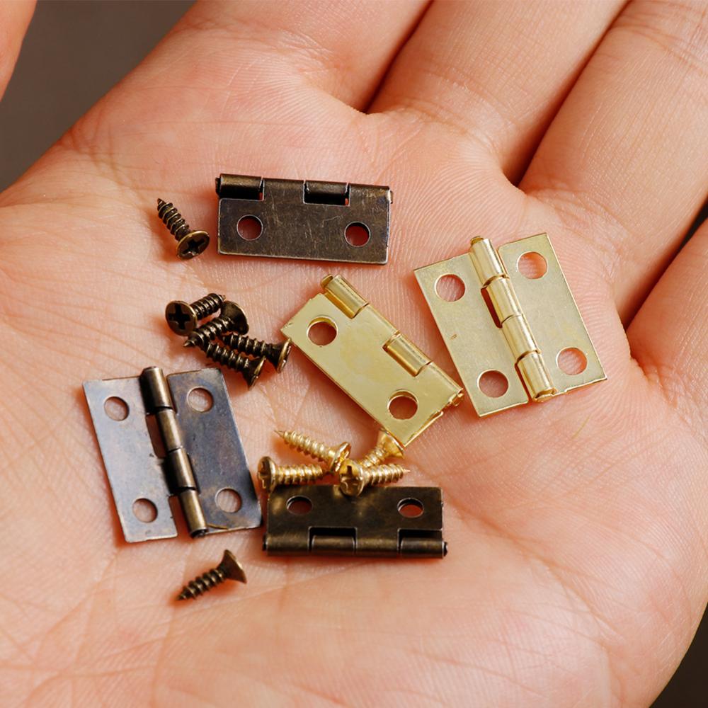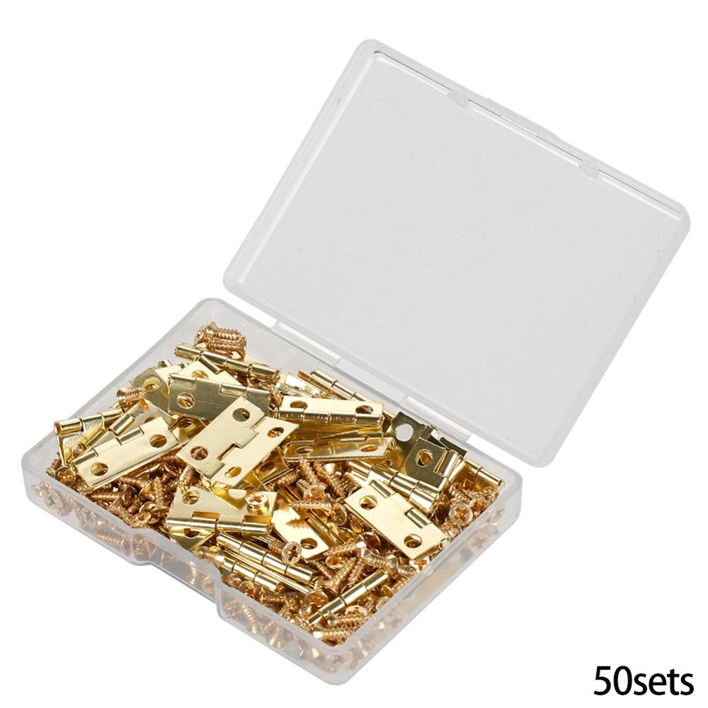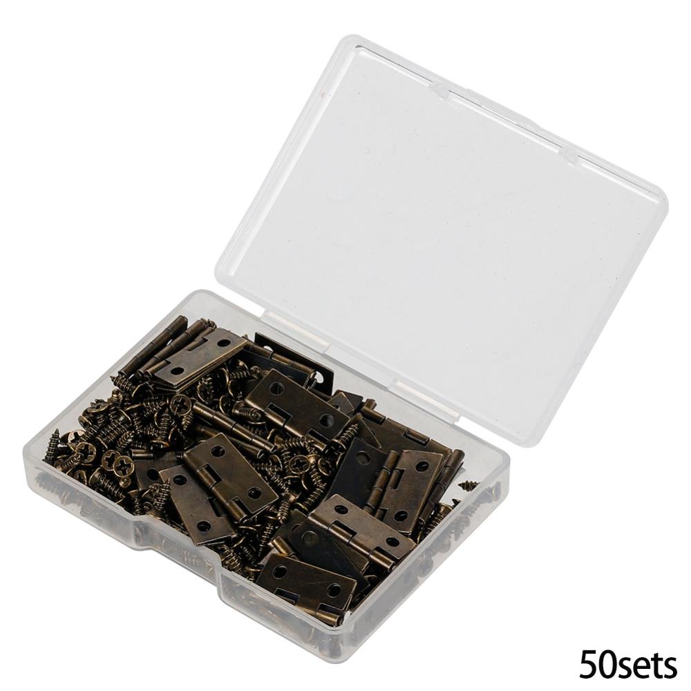 50Pcs /caixa Dobradiças + 200 Parafusos Ferro Dourado Preto Bronze 18 * 16mm Mini Dobradiça Arredondada DIY Box Hardware