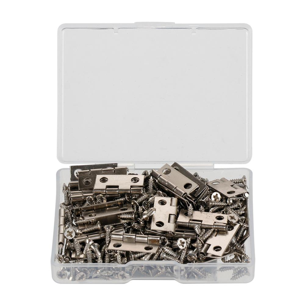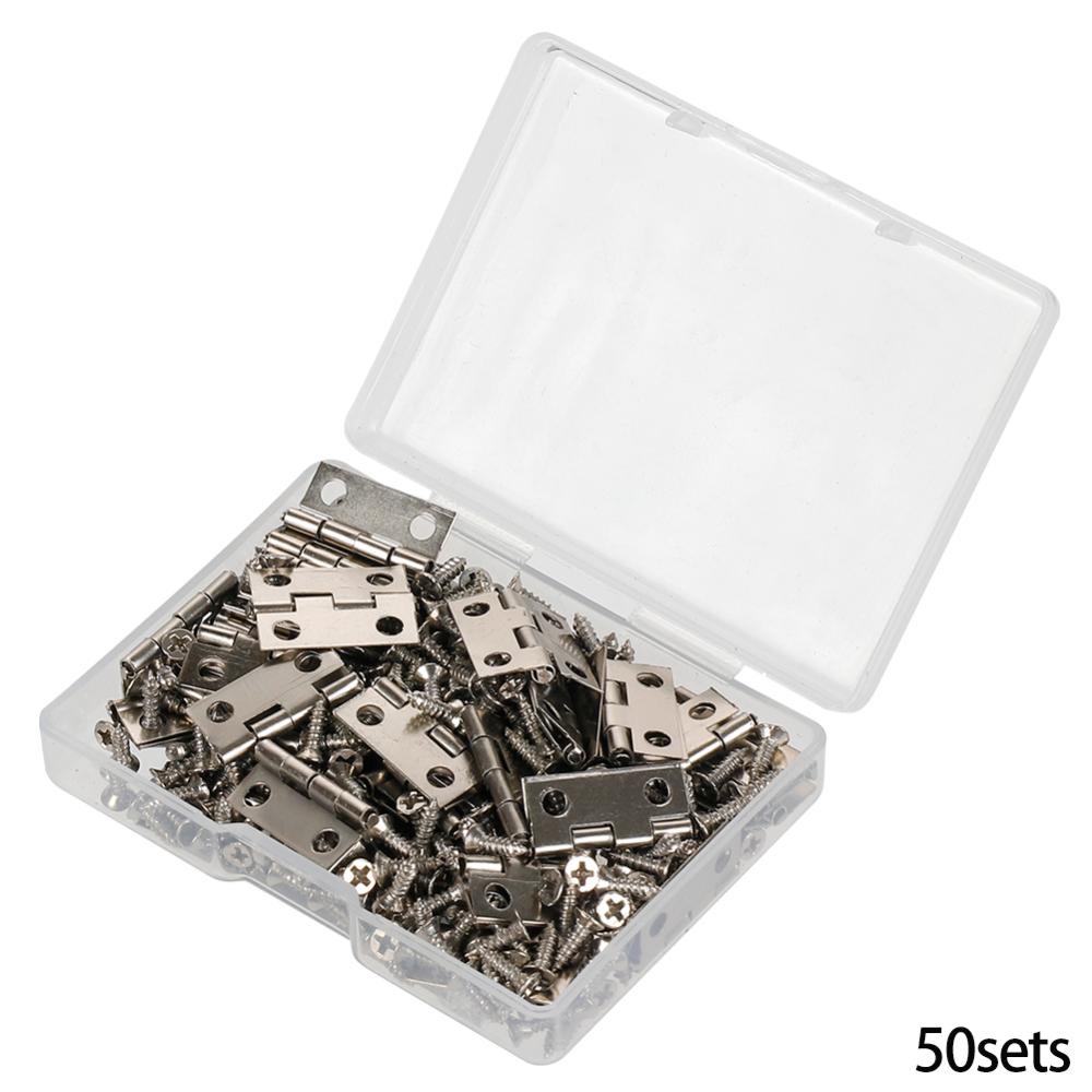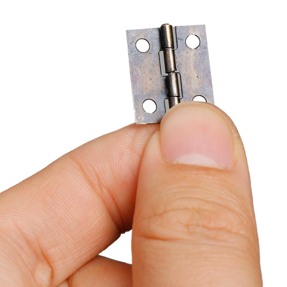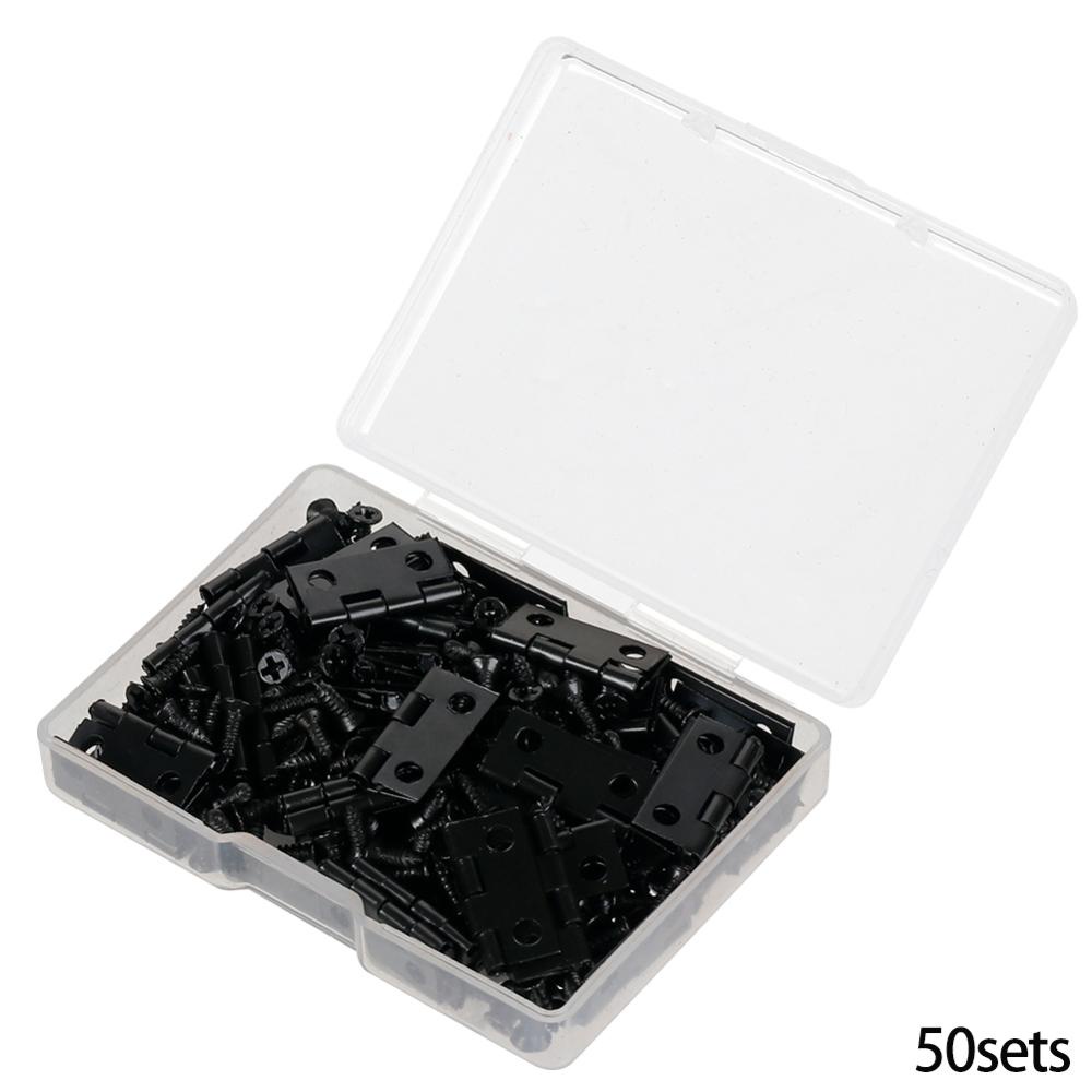 50Pcs /caixa Dobradiças + 200 Parafusos Ferro Dourado Preto Bronze 18 * 16mm Mini Dobradiça Arredondada DIY Box Hardware
